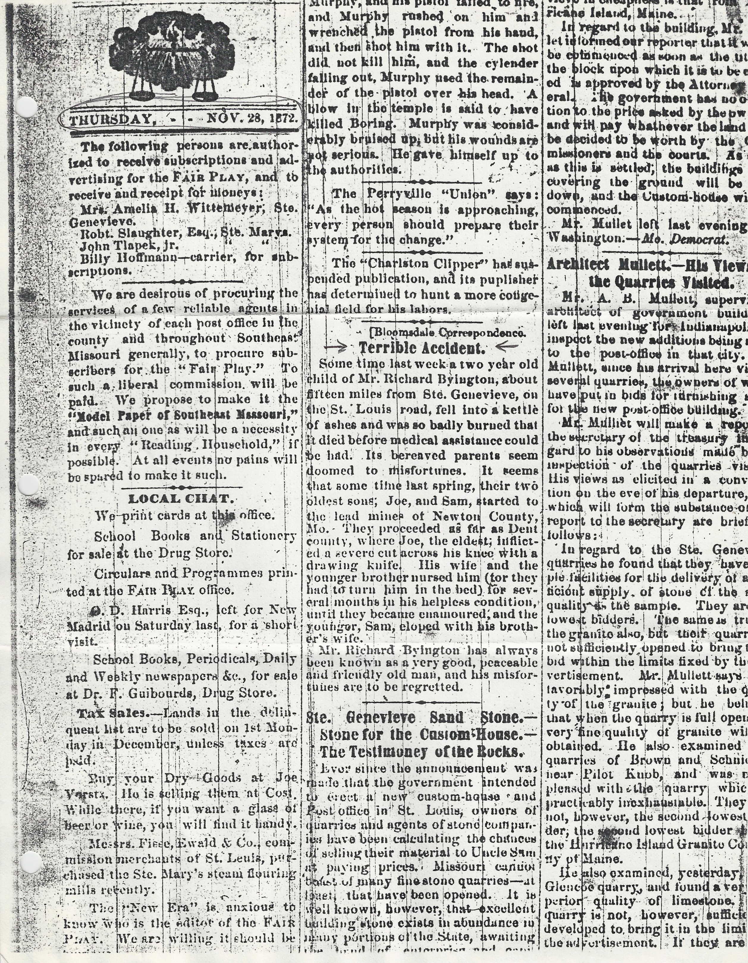 Terrible Accident (Newspaper article about Artimissa and Samuel Byington)