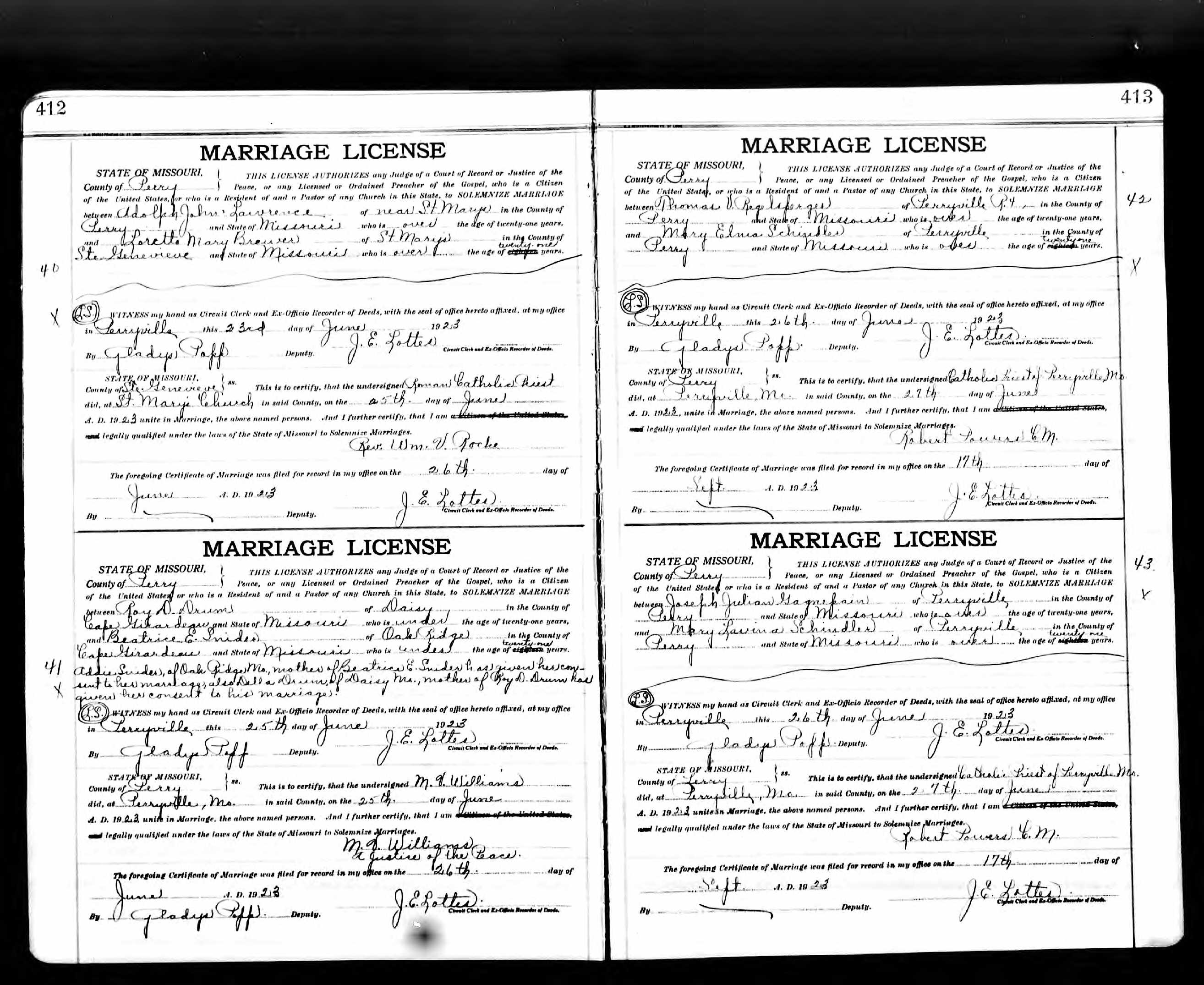 Missouri Marriage Record, Roy D. Drum and Beatrice E. Snider