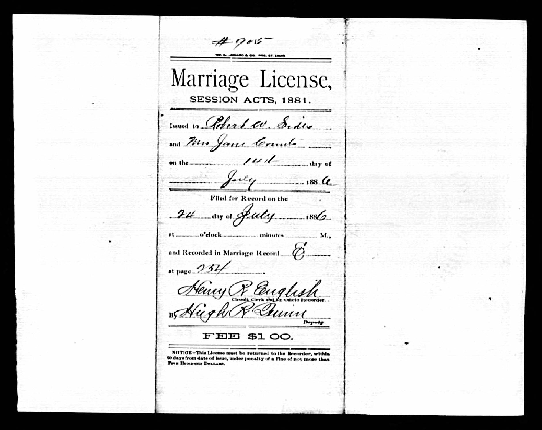 Missouri Marriage Record, Robert W. Sides and Mrs. Jane Counts