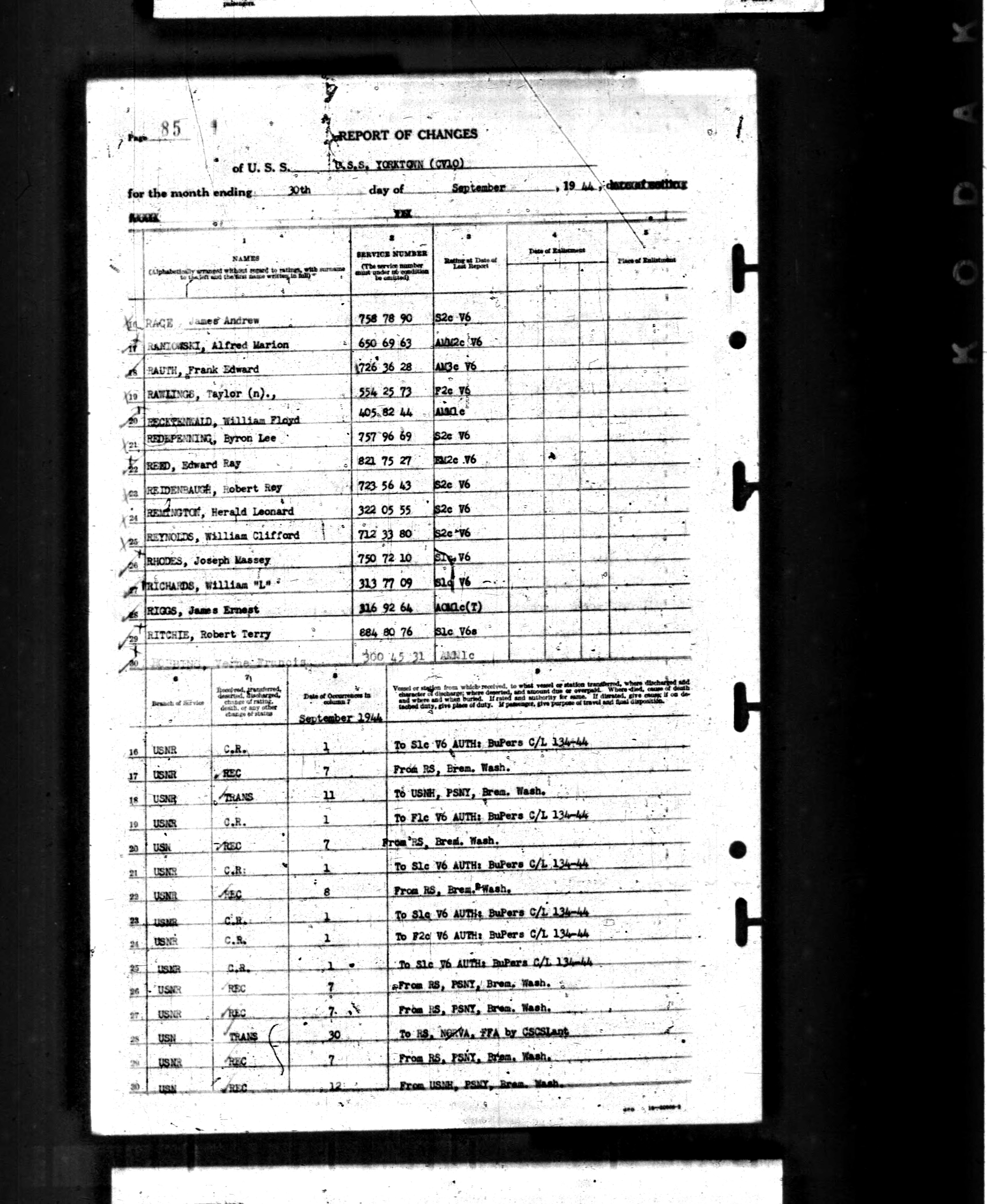 WWII U.S. Navy Aircraft Carrier Muster Rolls, Yorktown