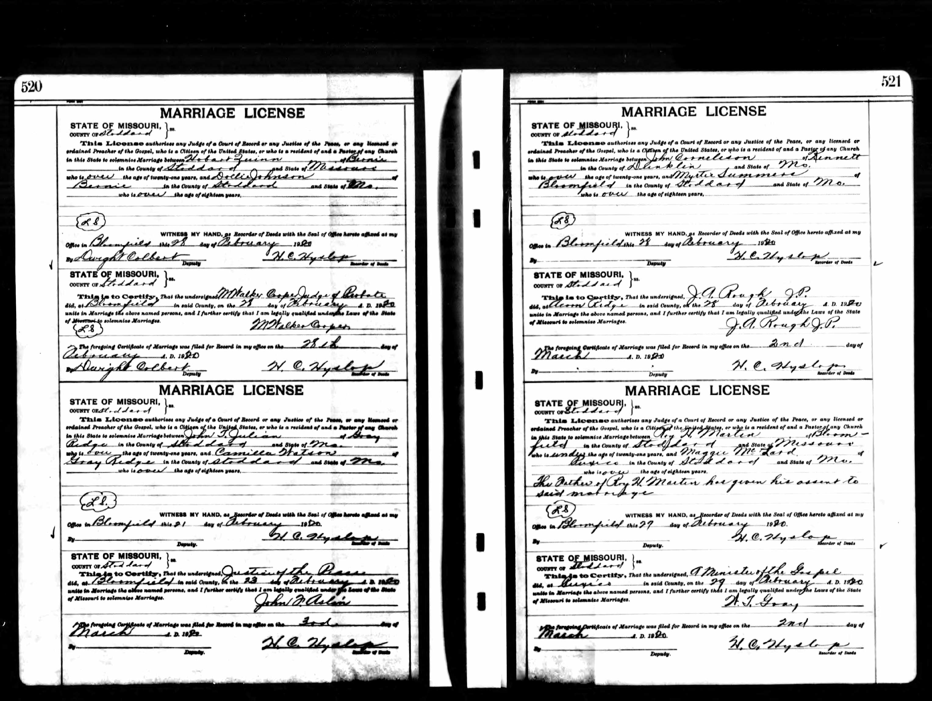 Missouri Marriage Record, Roy H. Martin and Maggie McLard