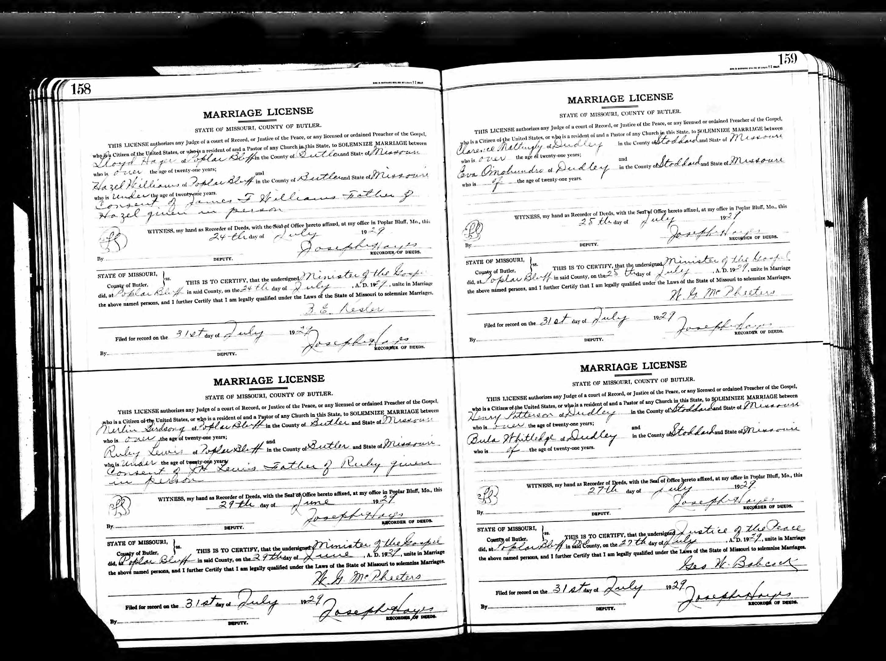 Missouri Marriage Record, Henry Patterson and Bula Whitledge