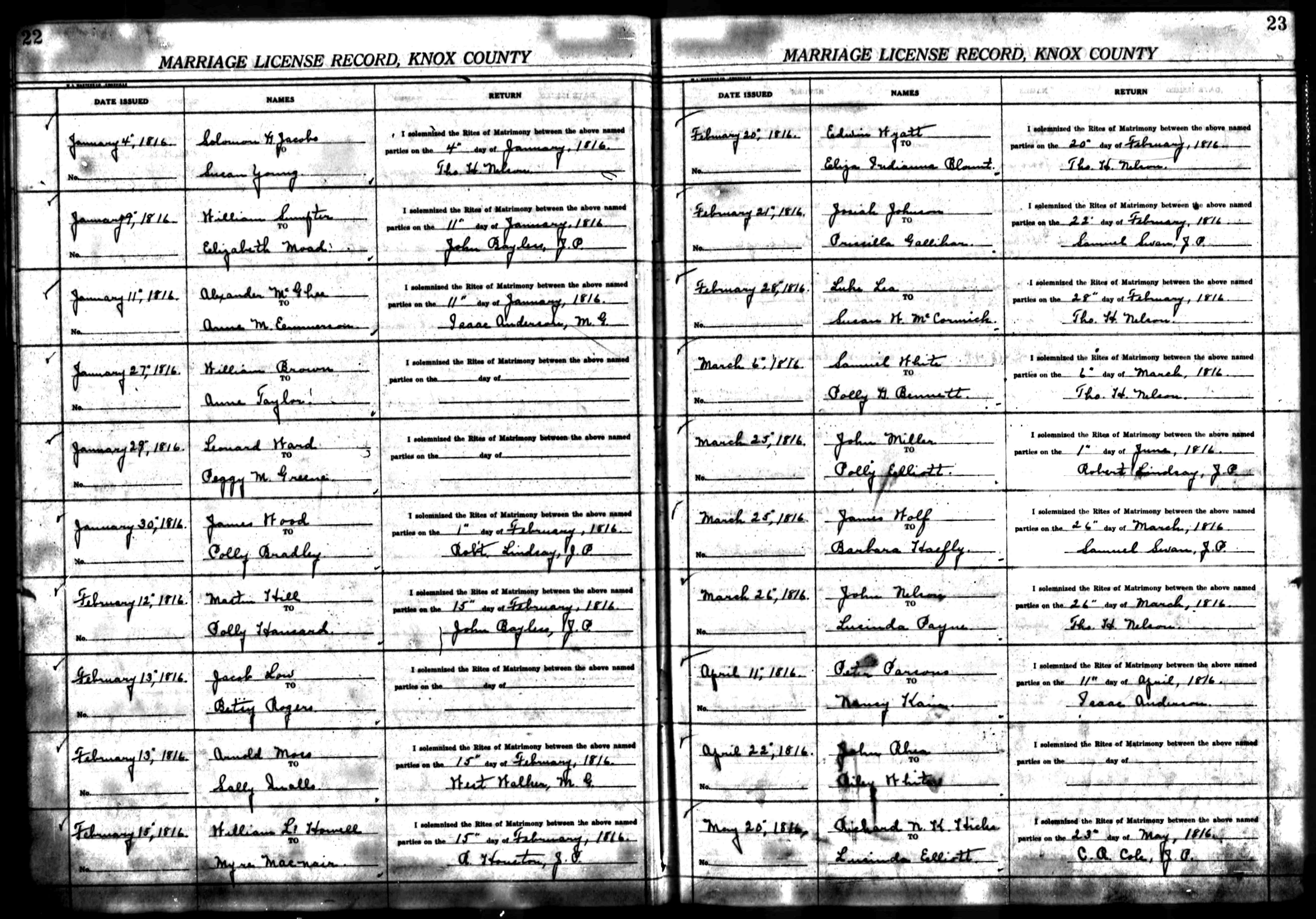 Tennessee Marriage Record, Arnold Moss and Sally Qualls