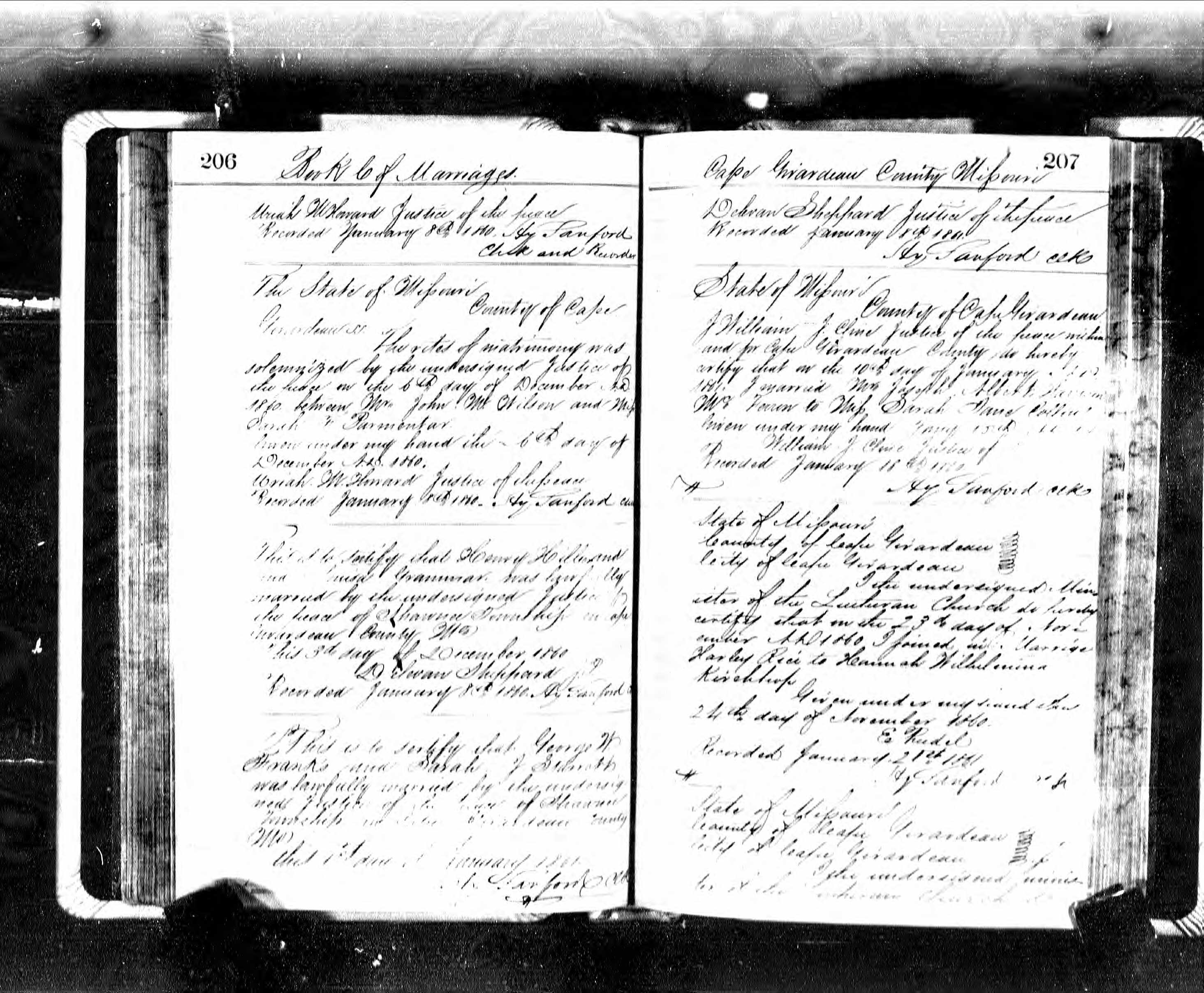 Missouri Marriage Record, George W. Frank and Sarah J. Starrett