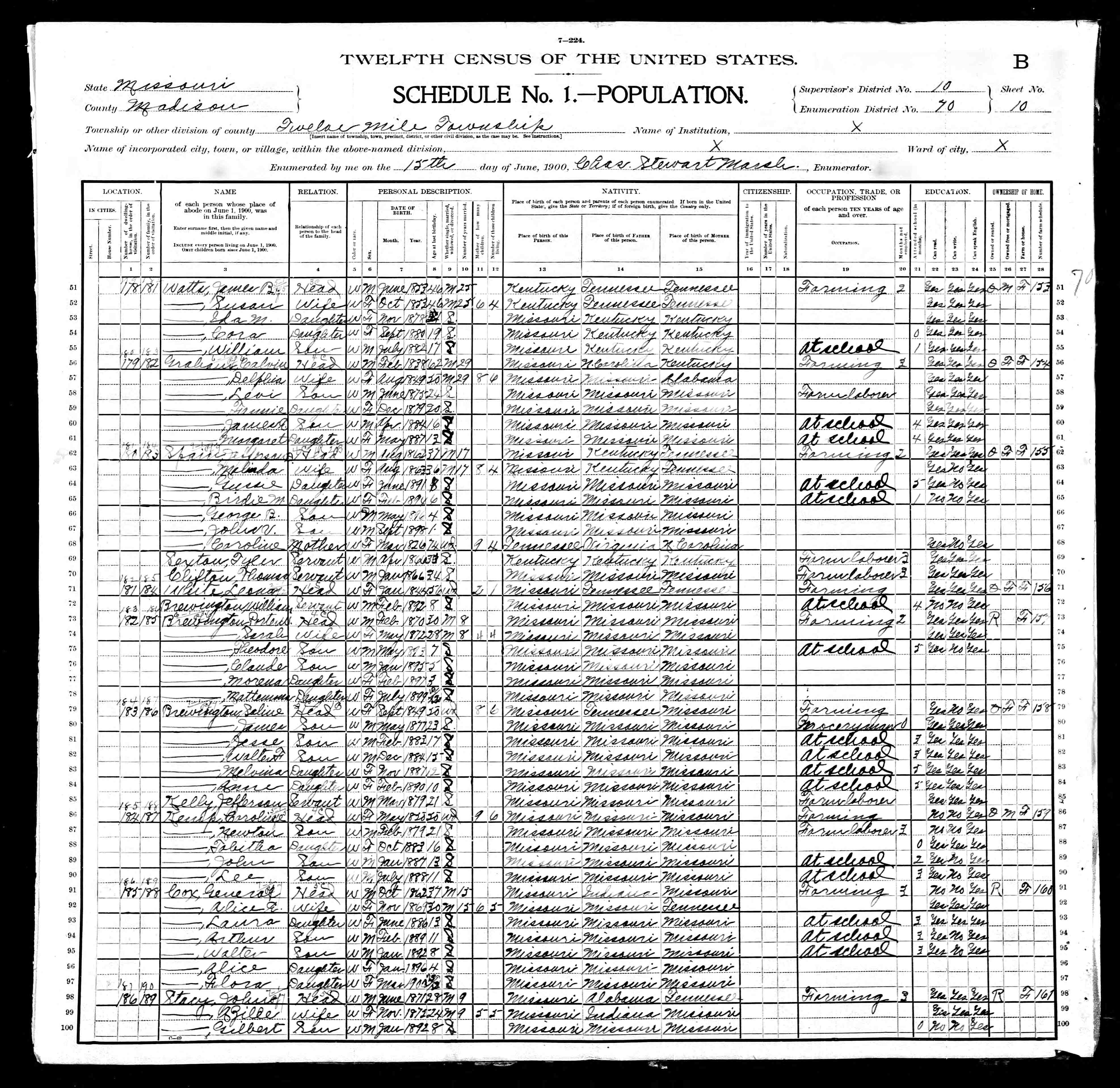 1900 Census, Twelvemile township, Madison county, Missouri