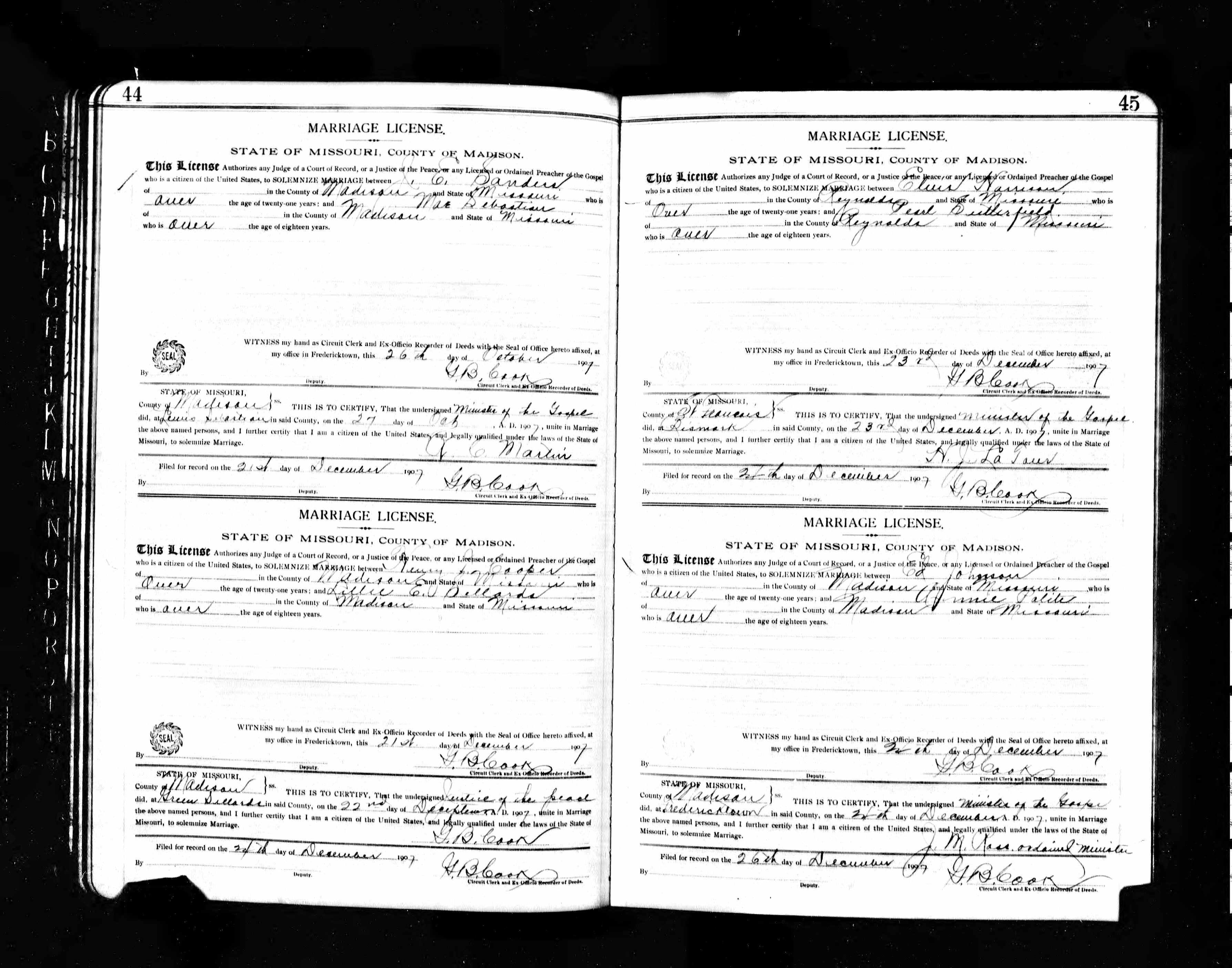 Missouri Marriage Record, Elvis Harrison and Pearl Sutterfield
