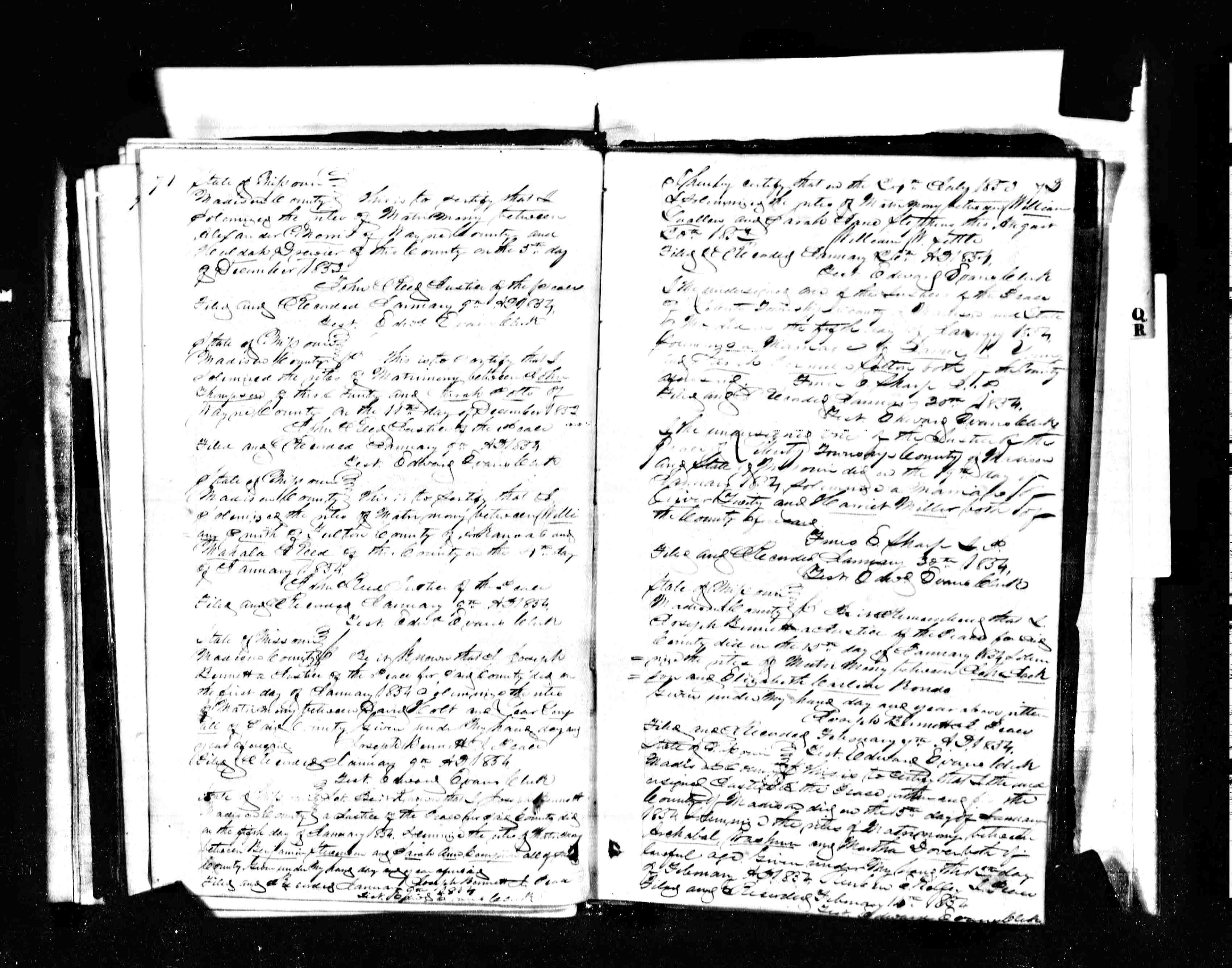 Missouri Marriage Record, James W. Young and Sarah Permila Sutton