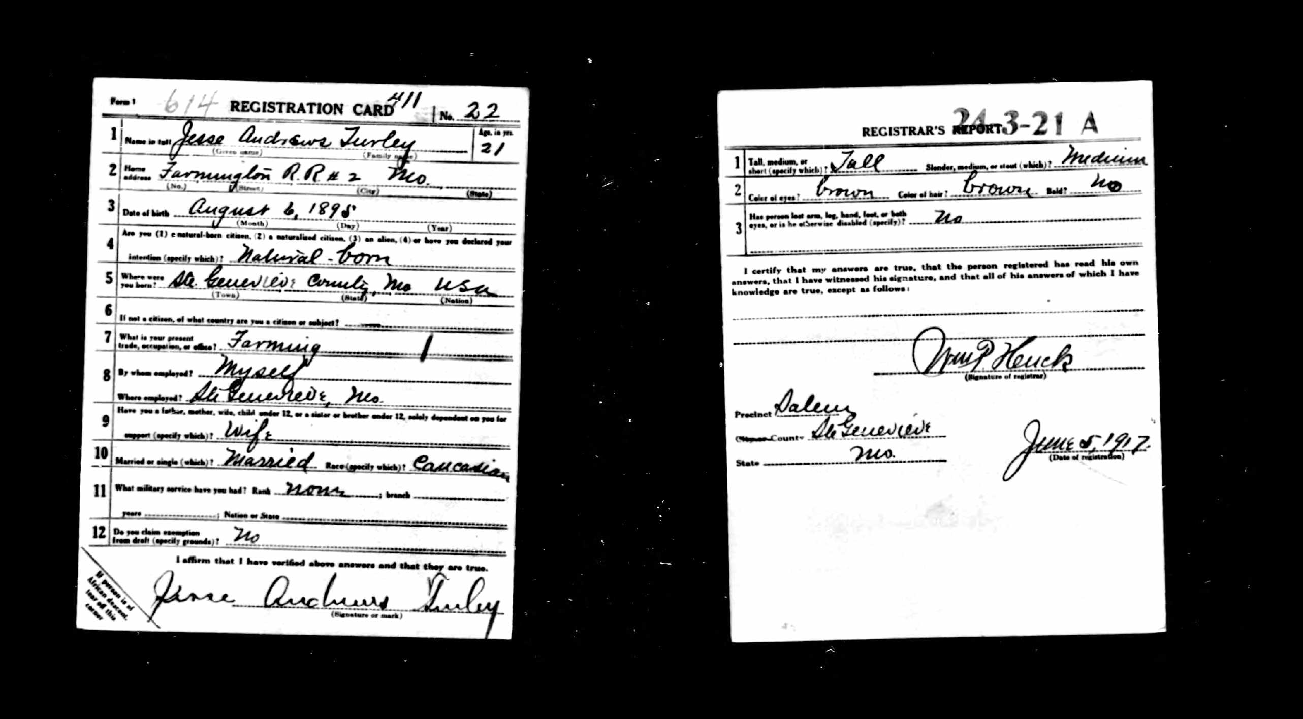 WWI Draft Registration, Jesse Andrews Turley
