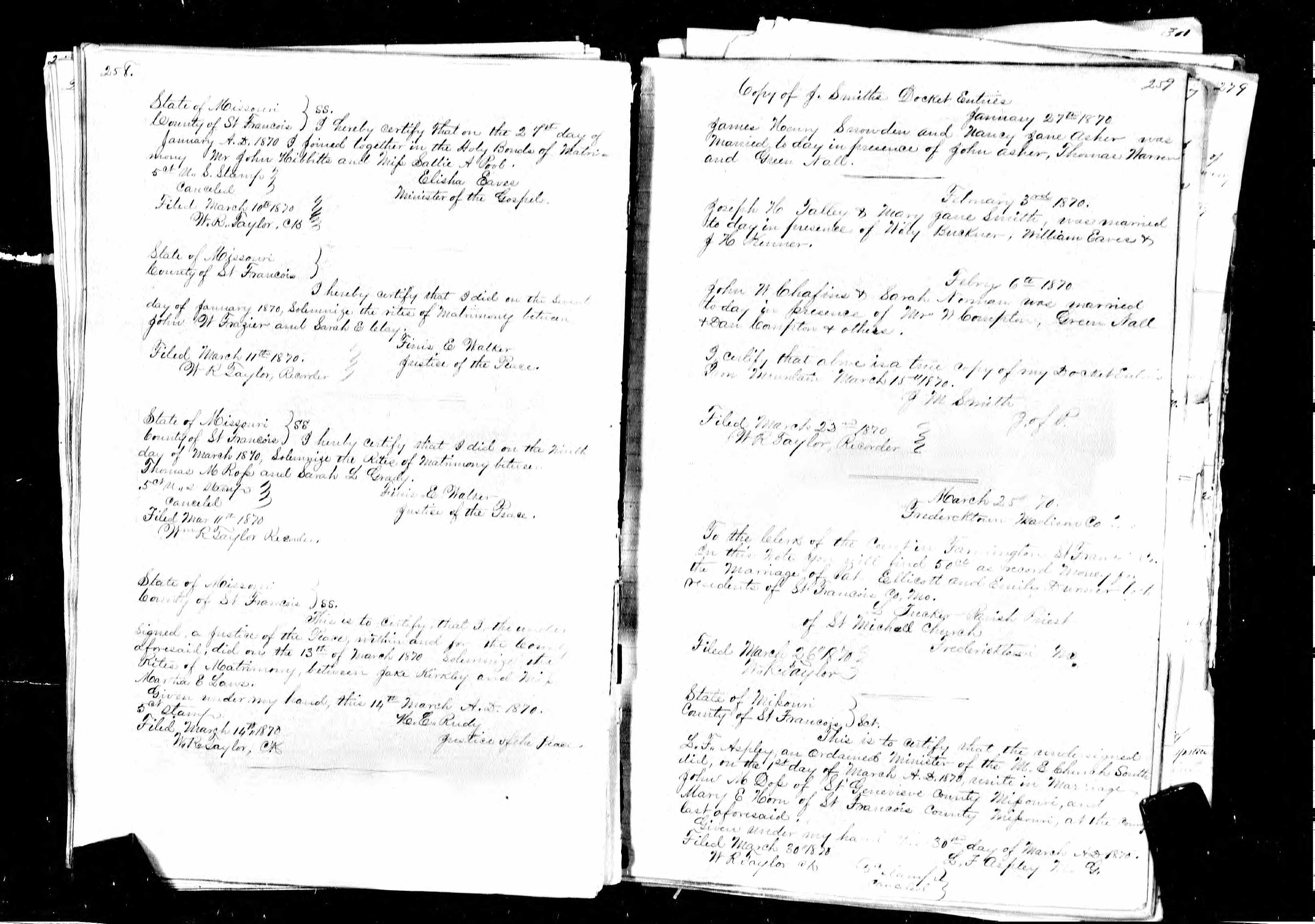 Missouri Marriage Record, John W. Frazier and Sarah E. Clay