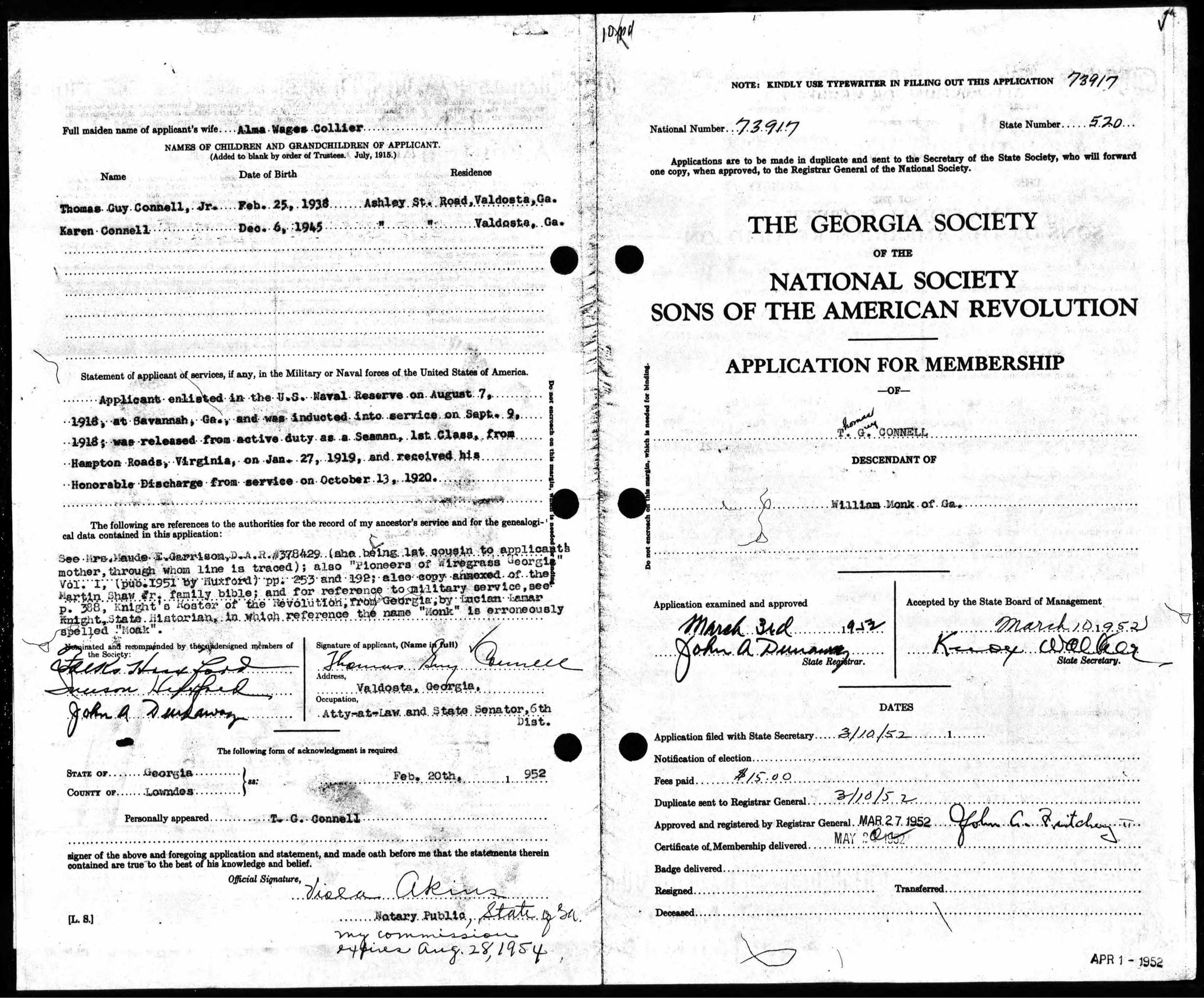 Sons of the American Revolution Application for William Harley Huxford