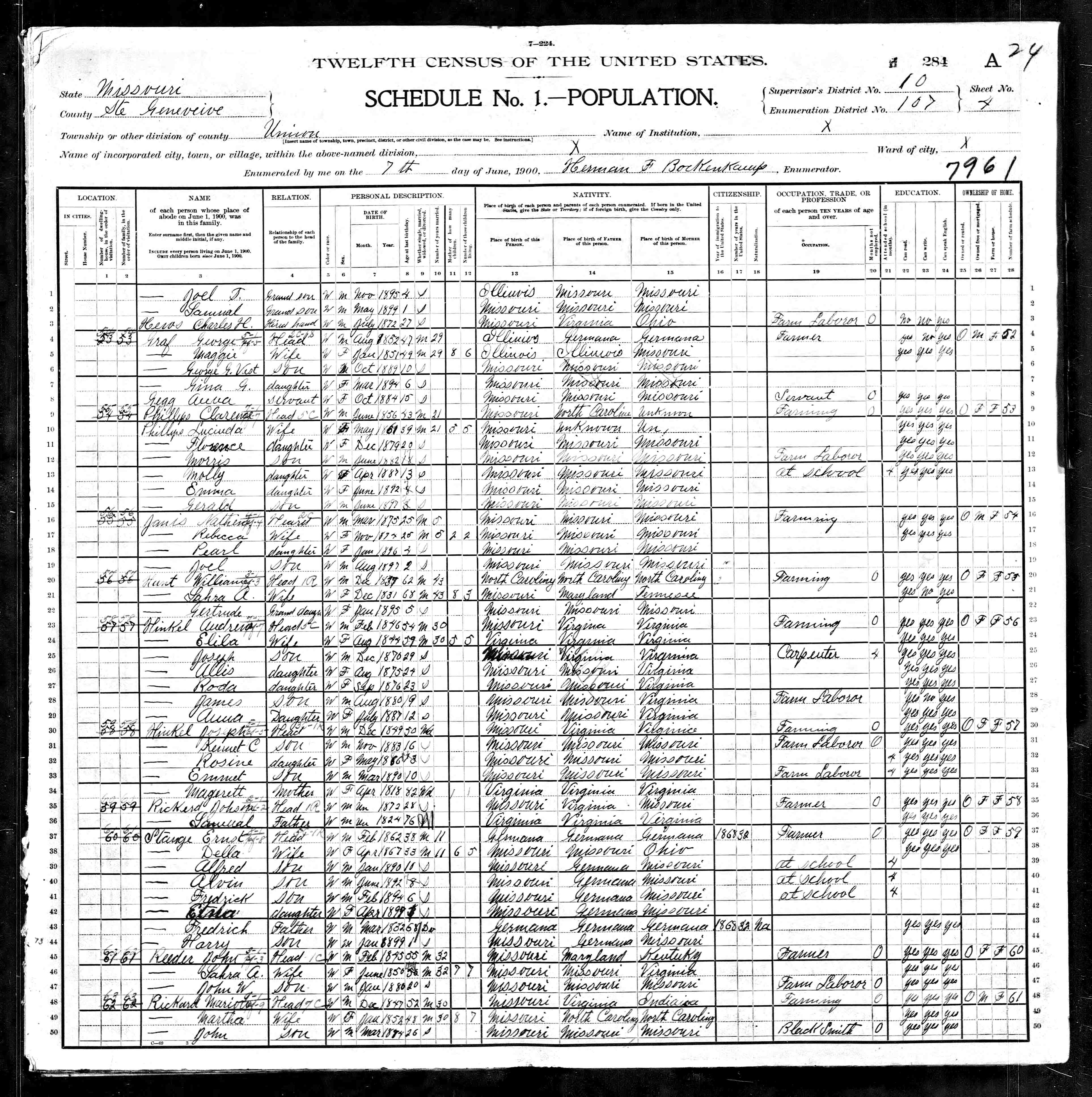 1900 Census, Union township, Ste. Genevieve county, Missouri