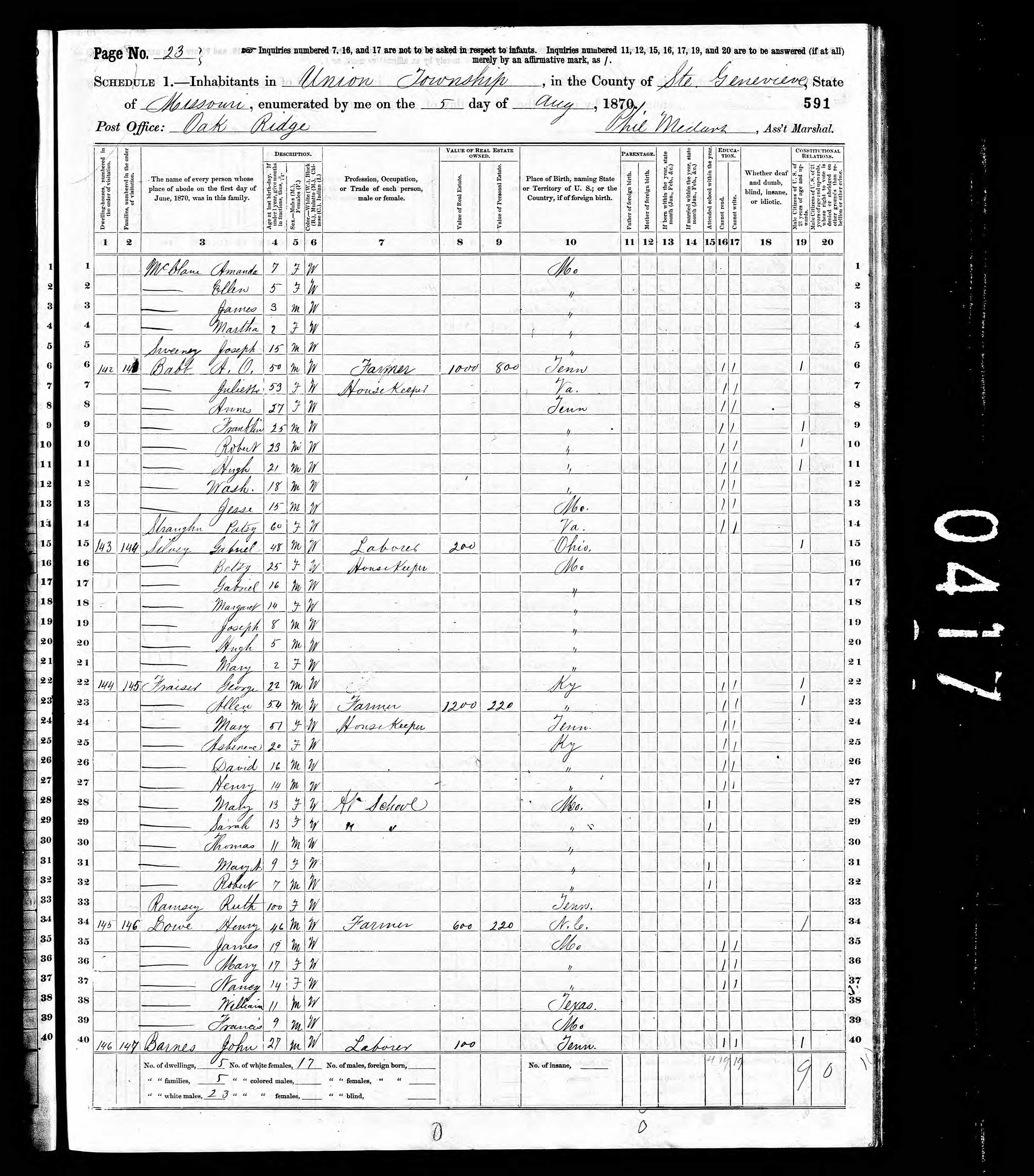 Missouri, Union township, Ste. Genevieve county, Page 23, Lines 22-33
