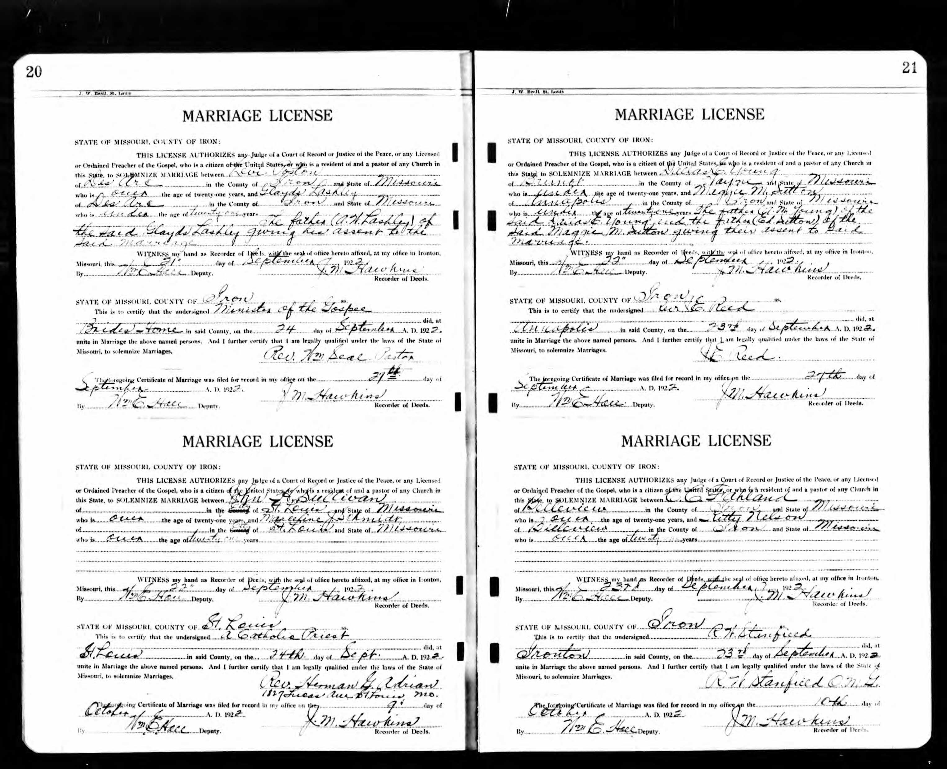 Missouri Marriage Record, Dallas E. Young and Maggie M. Sutton