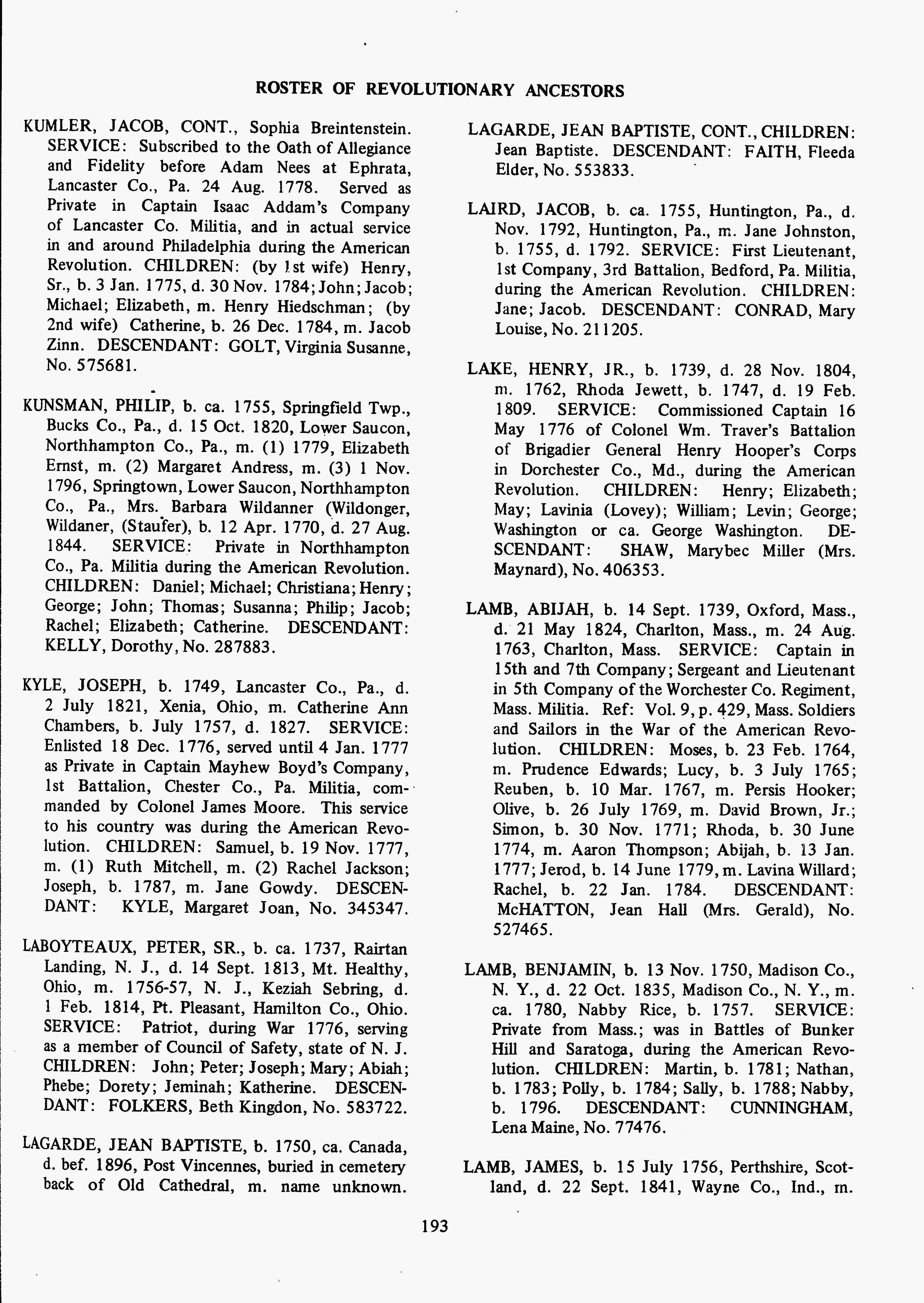 From A roster of Revolutionary ancestors of the Indiana Daughters of the American Revolution
