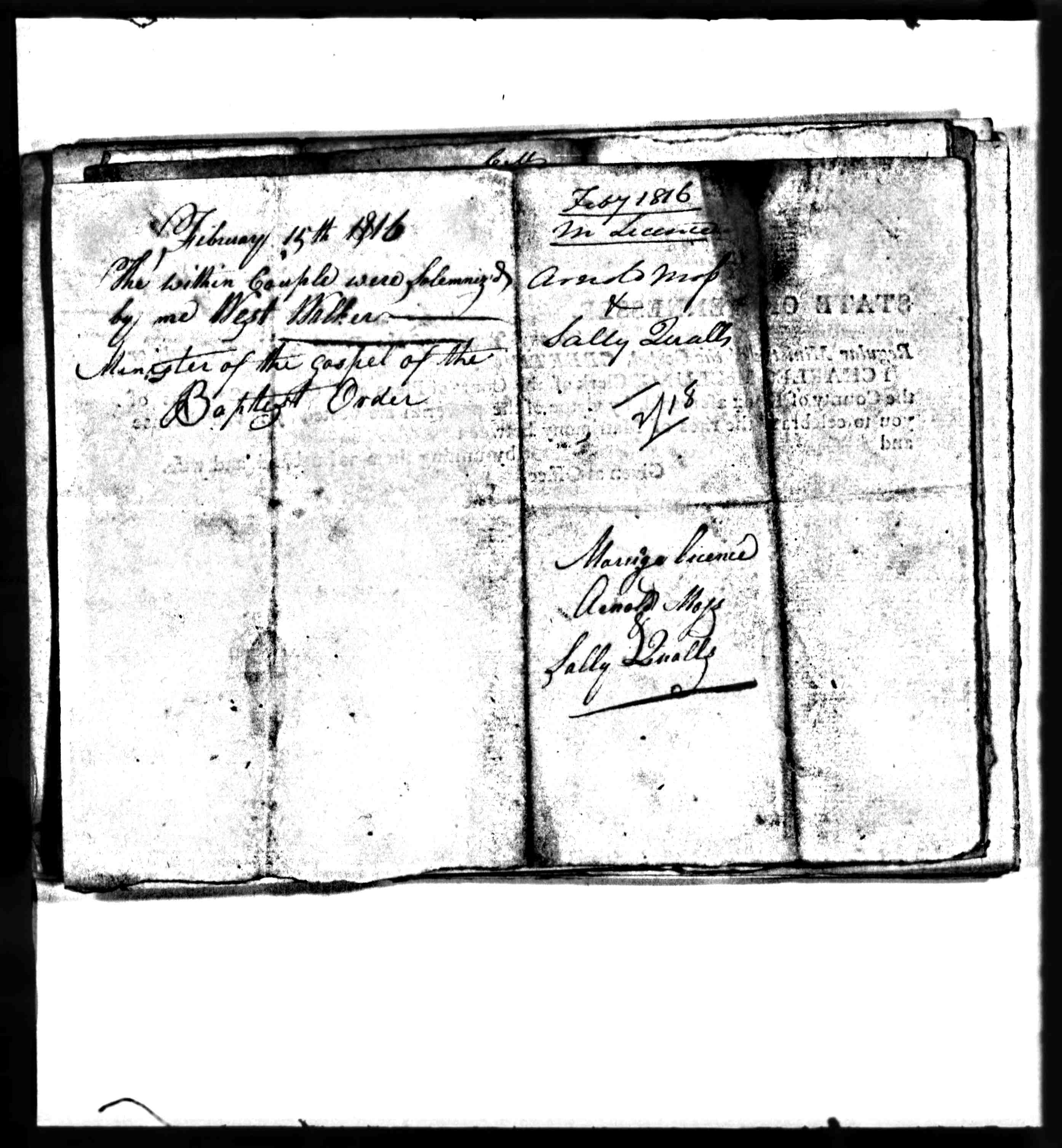 Tennessee Marriage Record, Arnold Moss and Sally Qualls
