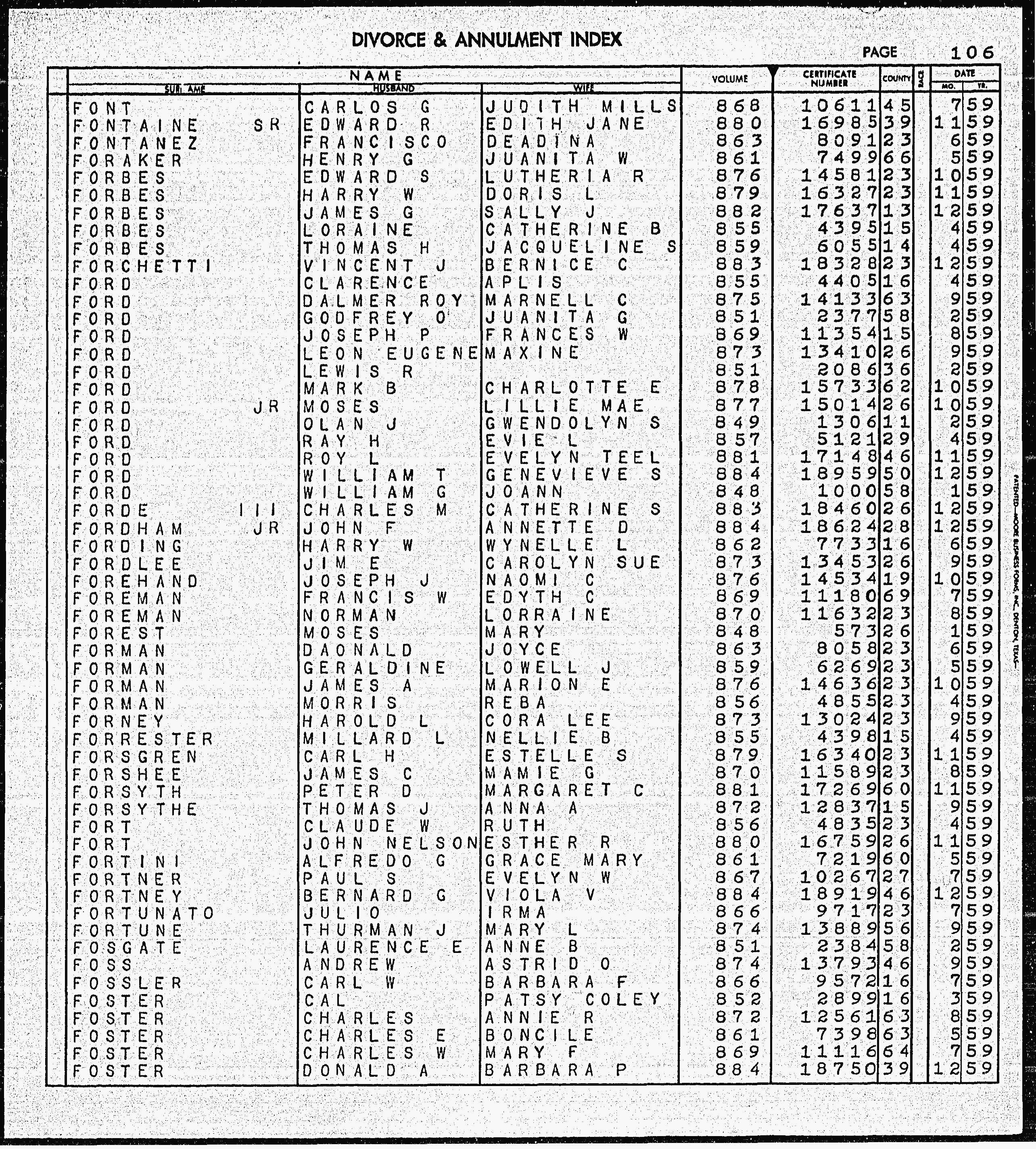 Florida Divorce Index, James C. Forshee and Mamie G. Forshee