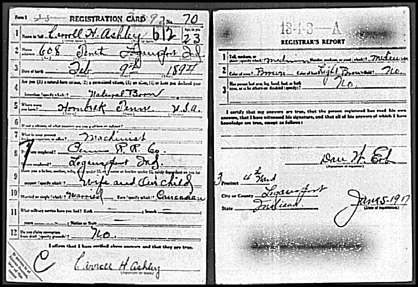 WWI Draft Registration, Carroll H. Ashley