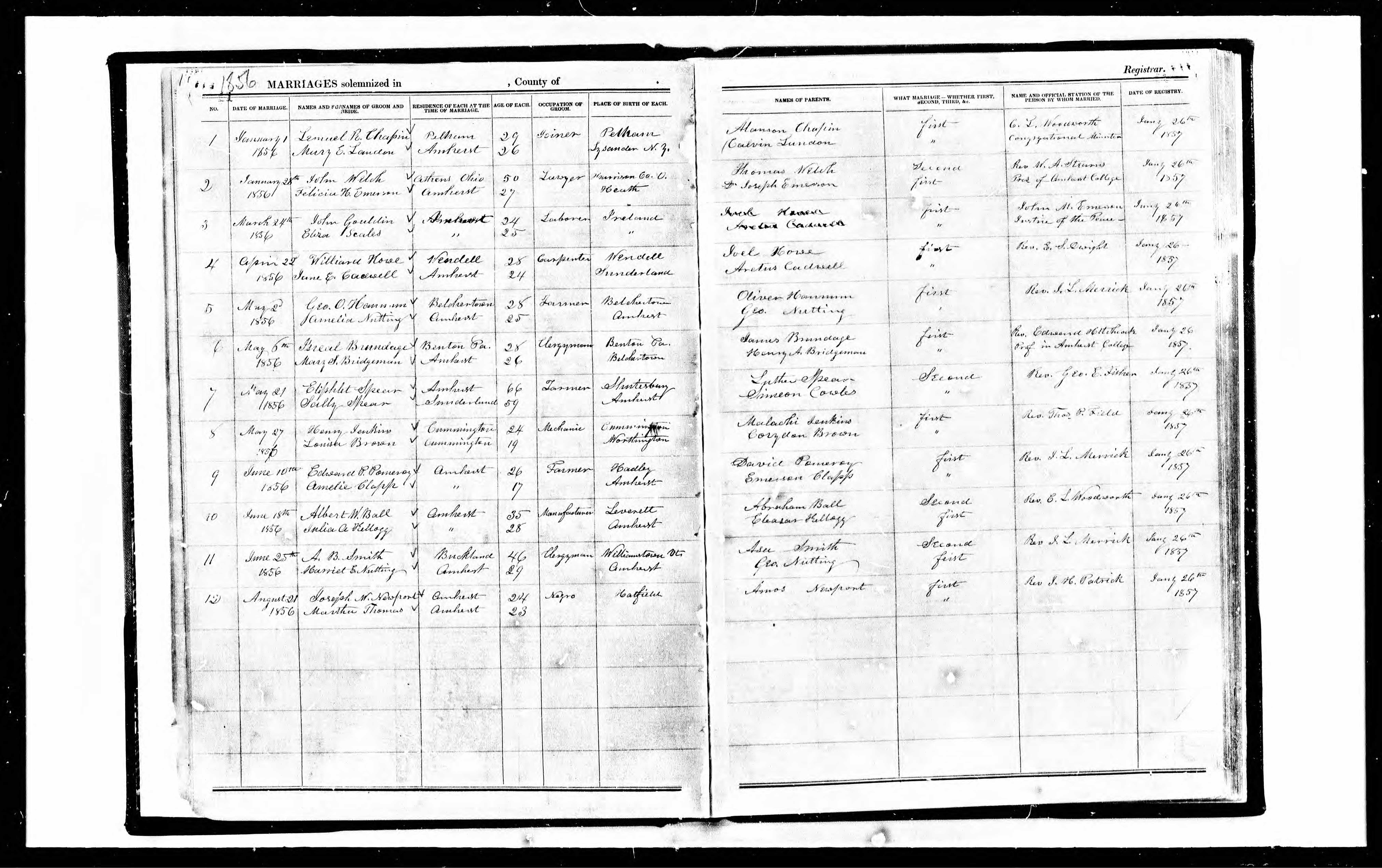Massachusetts Marriage Records, Isreal Brundage and Mary S. Bridgeman