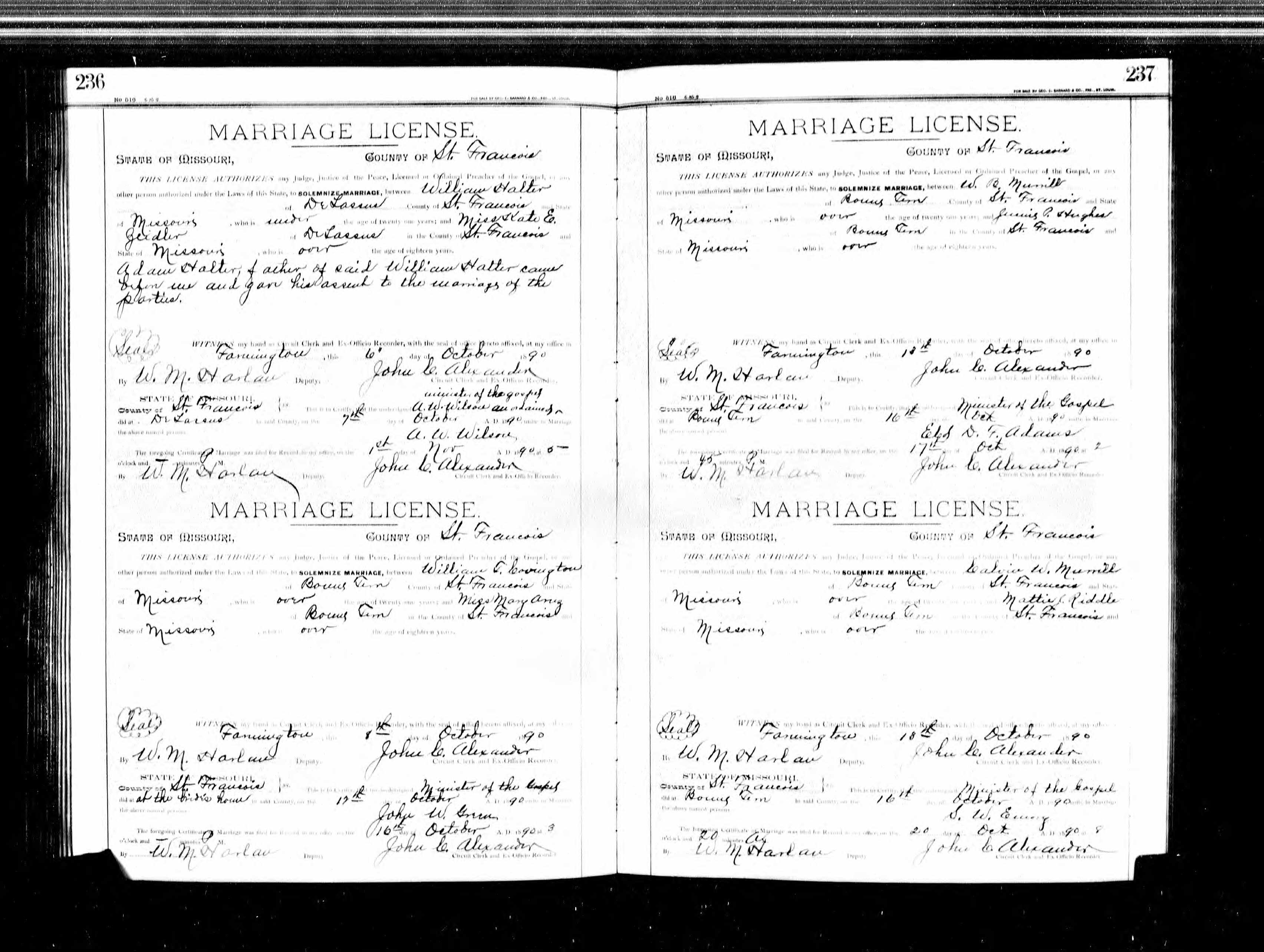 Missouri Marriage Record, William T. Covington and Mary Anez