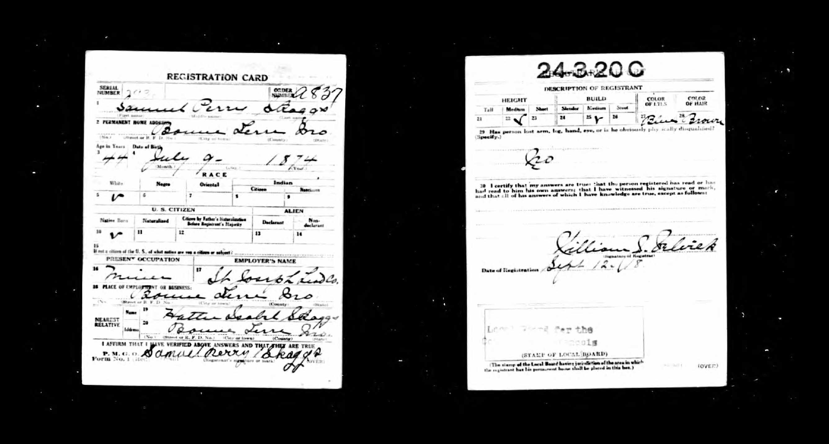 WWI Draft Registration, Samuel Perry Skaggs