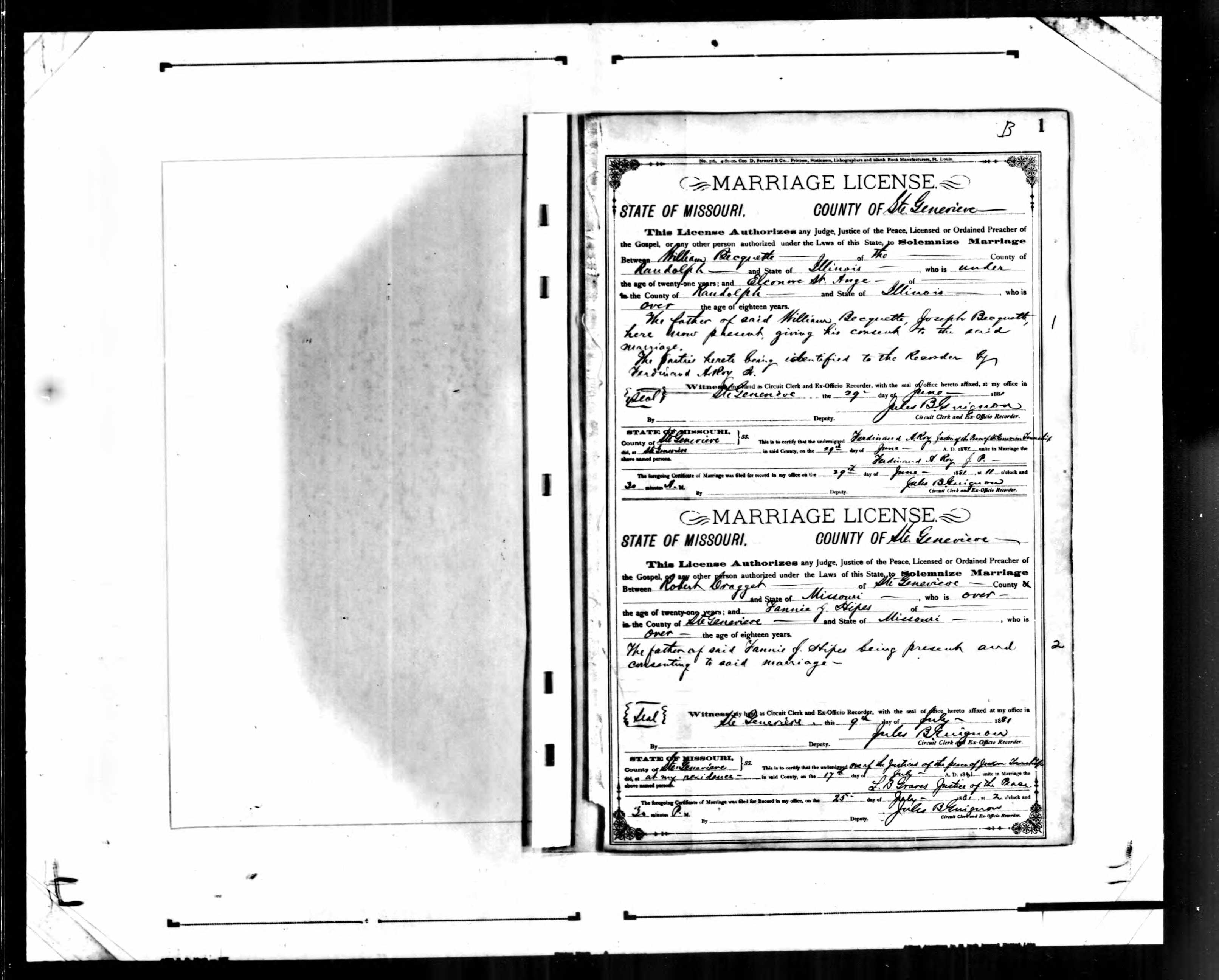 Missouri Marriage Record, Robert Cragget and Fannie J. Hipes