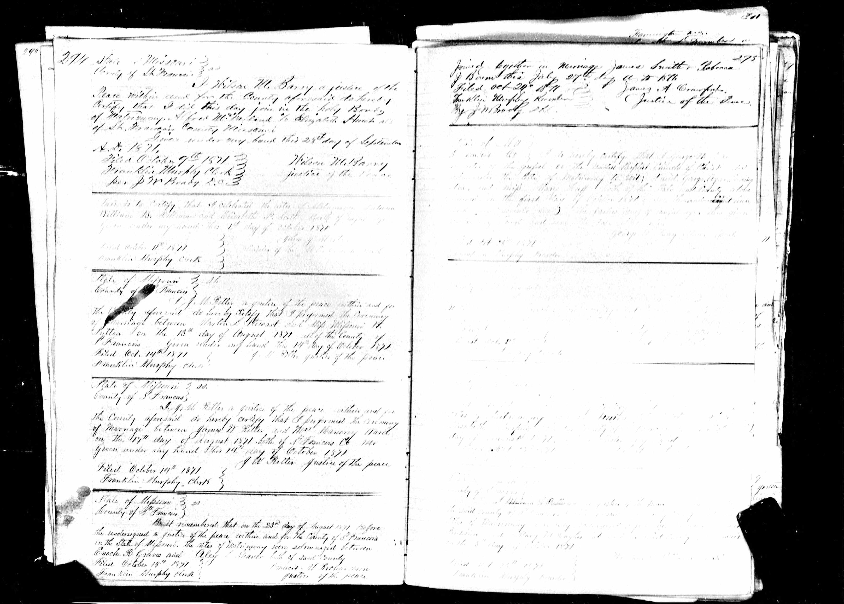 Missouri Marriage Record, Thomas Pinkston and Mary M. Hughes
