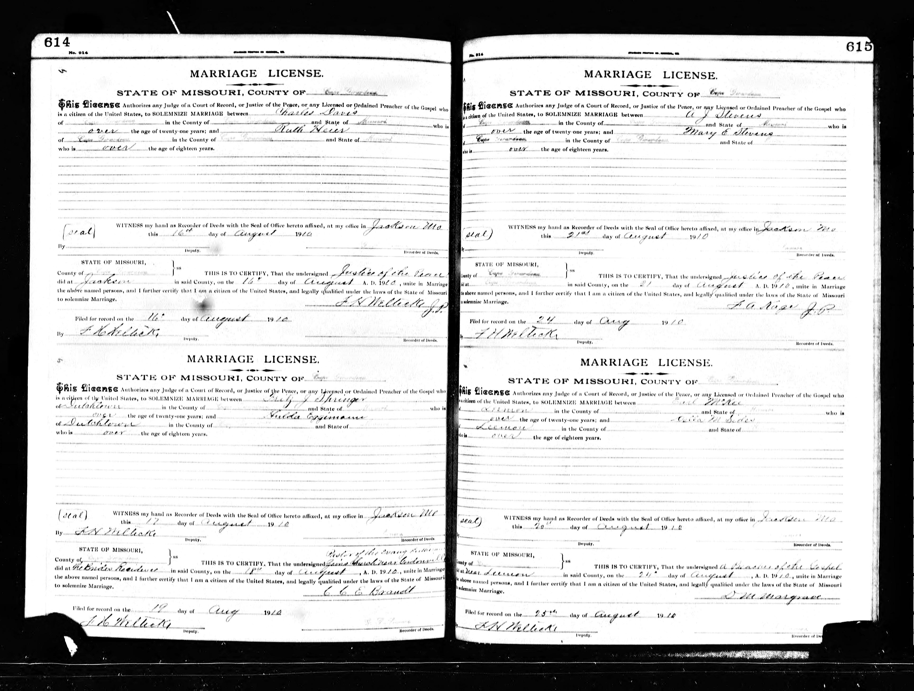 Missouri Marriage Record, Earl McKee and Della M. Sides