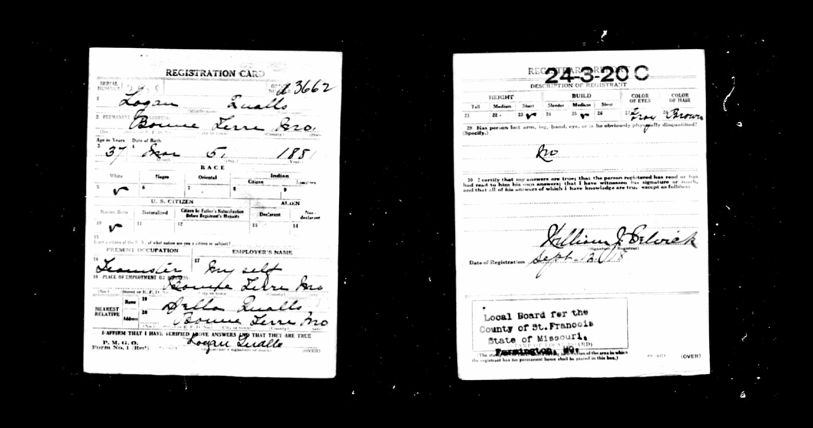 WWI Draft Registration, Logan Qualls