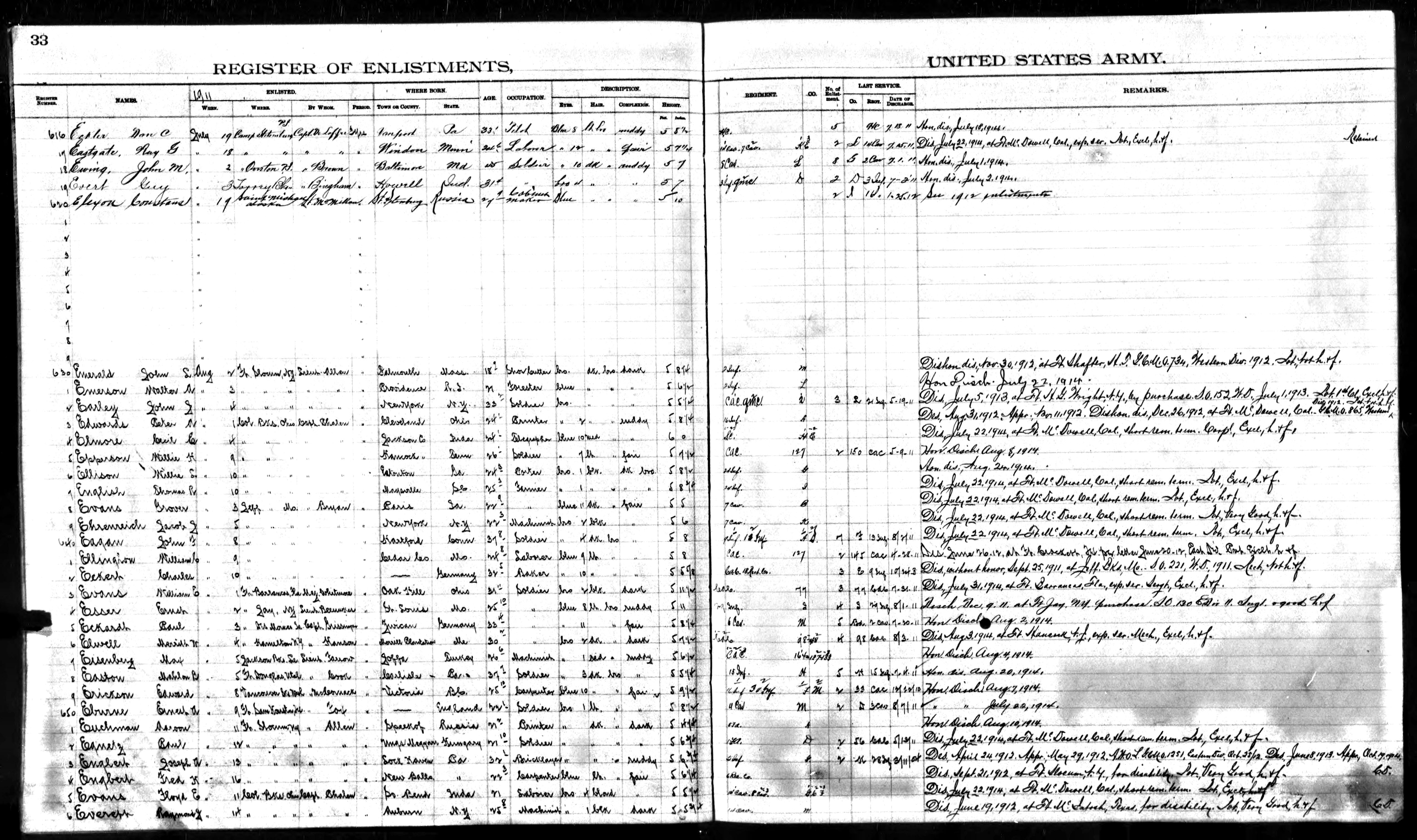 U.S. Army, Register of Enlistments, Ray G. Eastgate