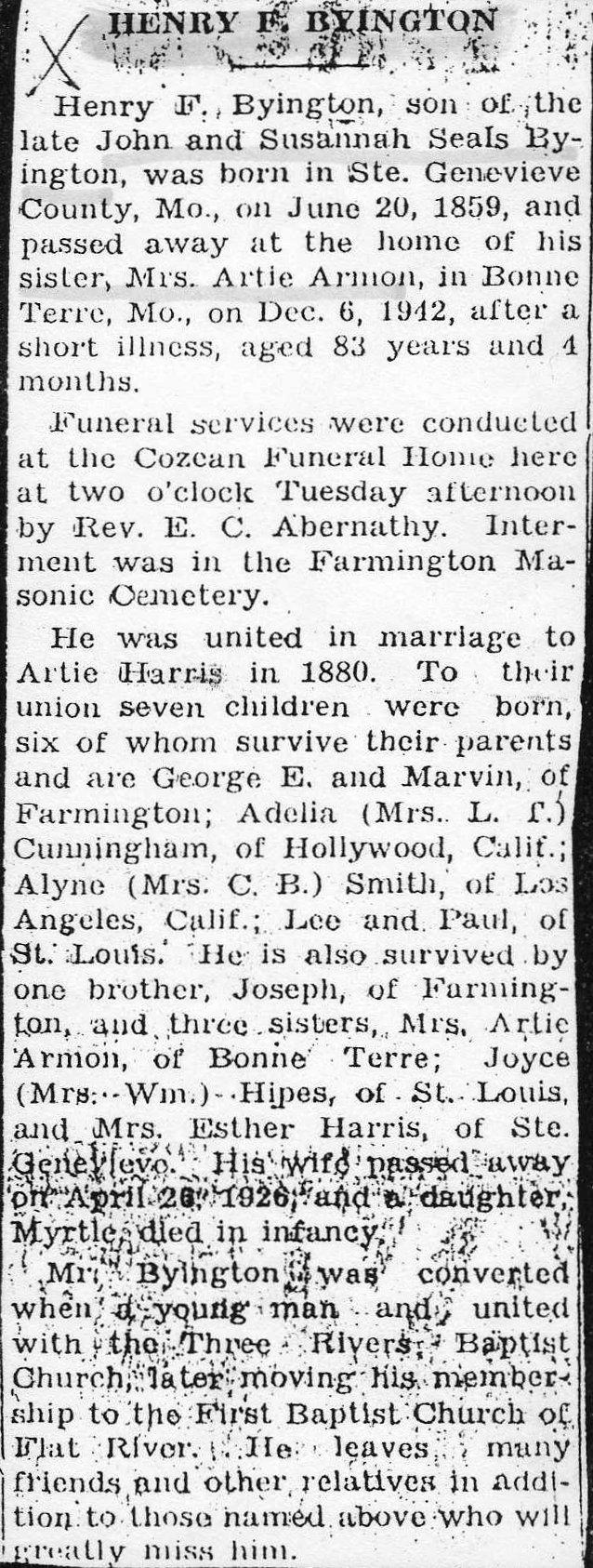 Obituary, Henry F. Byington