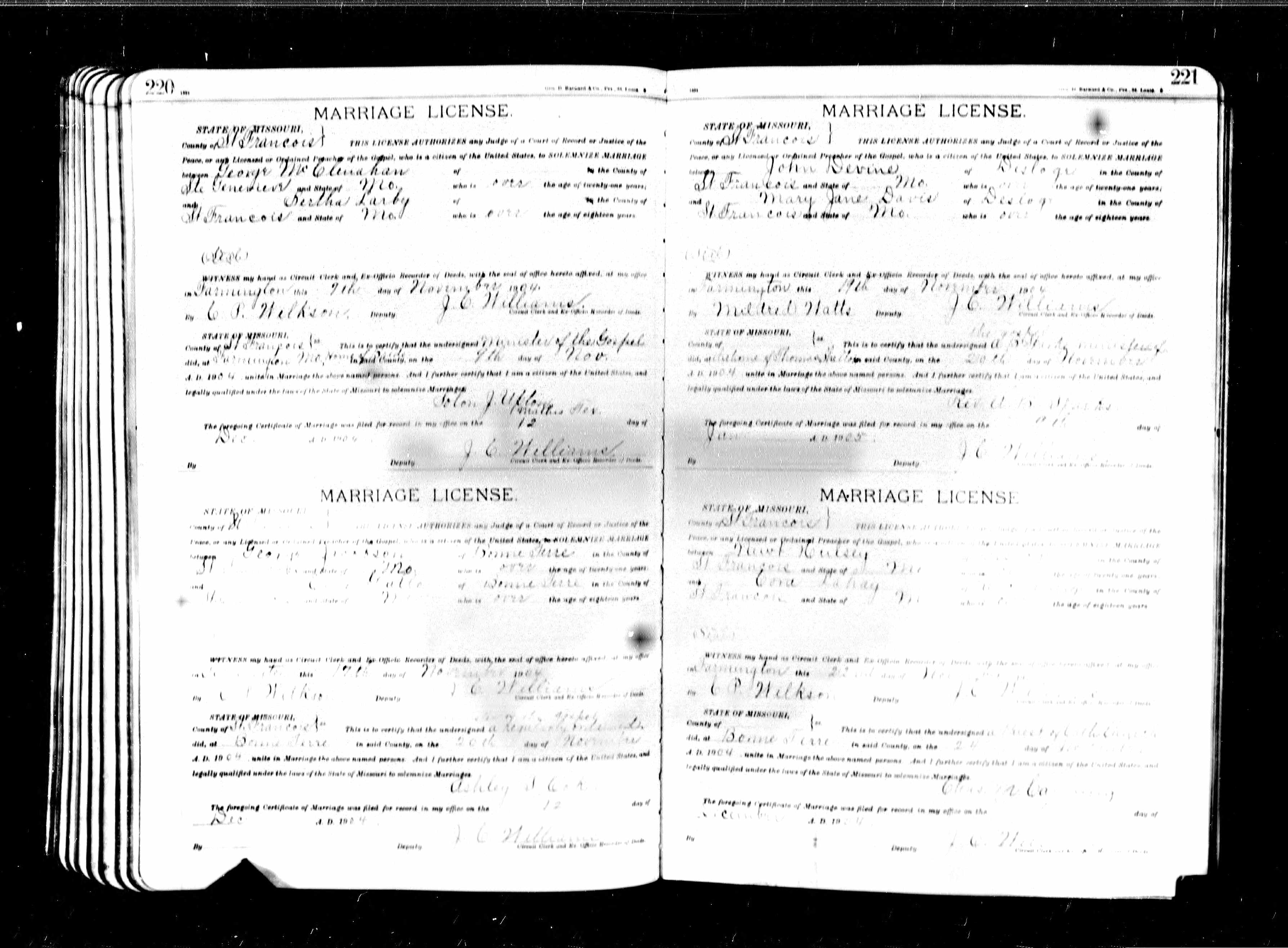 Missouri Marriage Record, George McClenahan and Bertha Larby
