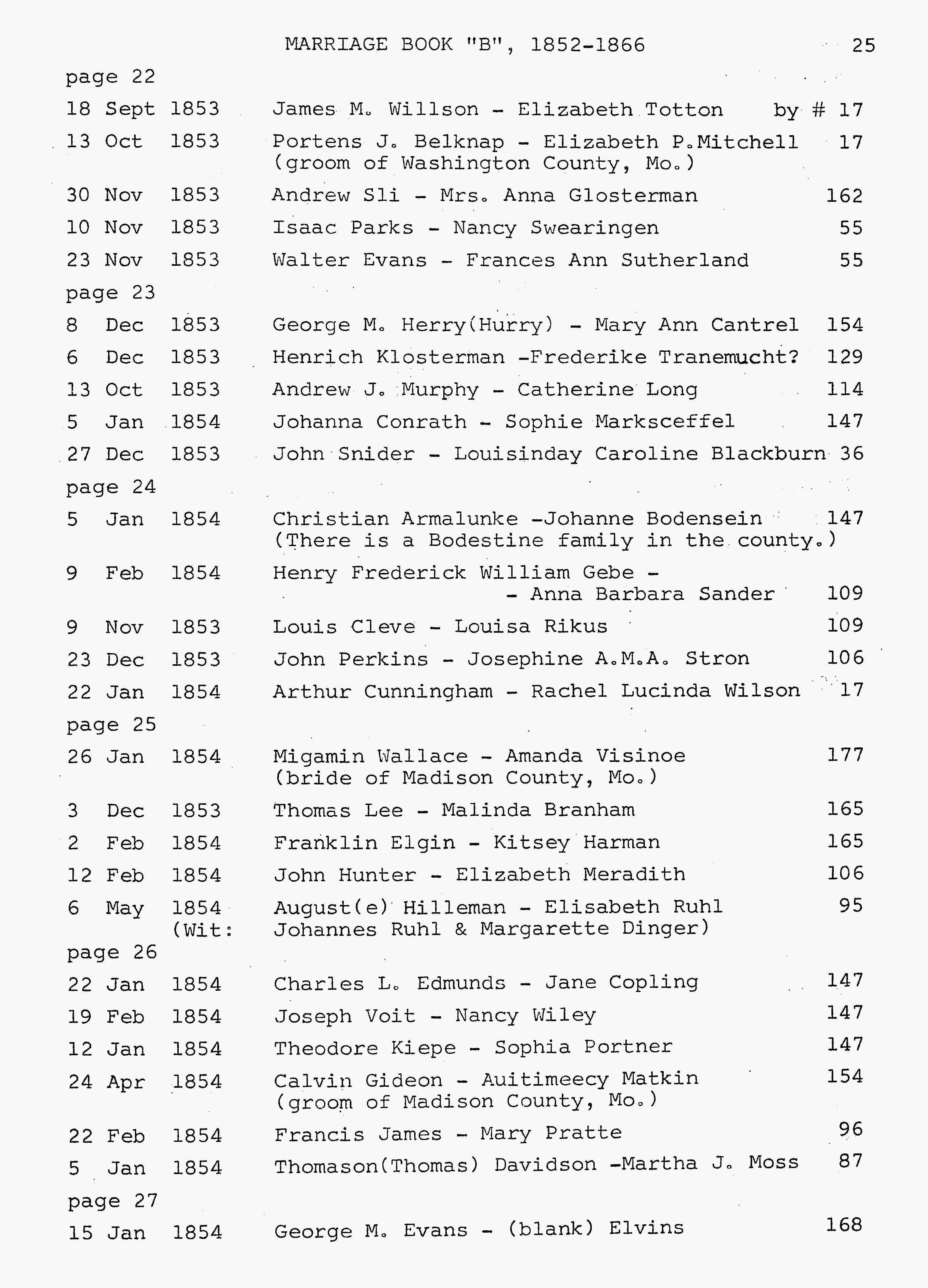 St. Francois county Marriage Index, Isaac Parks and Nancy Searingen