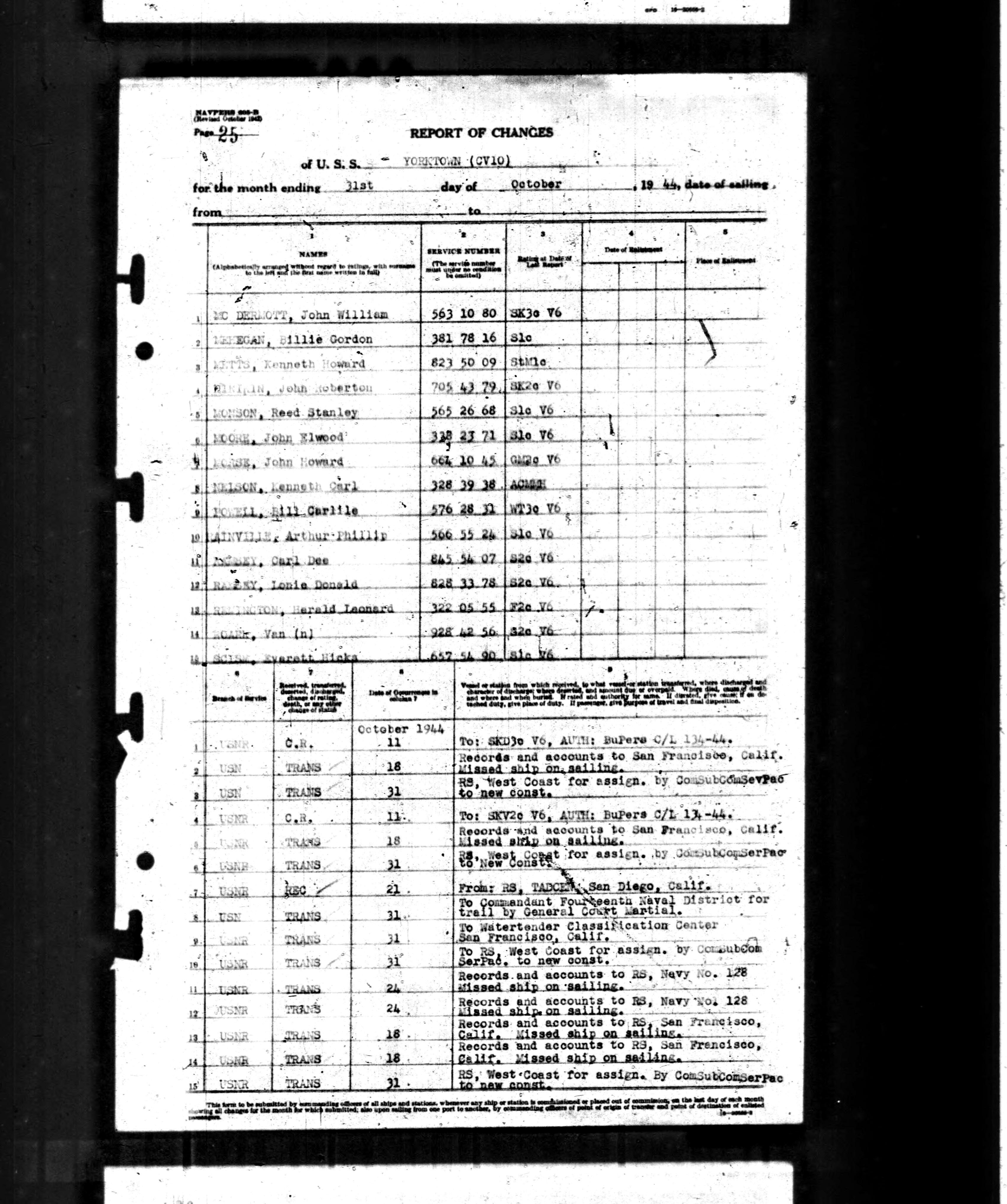 WWII U.S. Navy Aircraft Carrier Muster Rolls, Yorktown