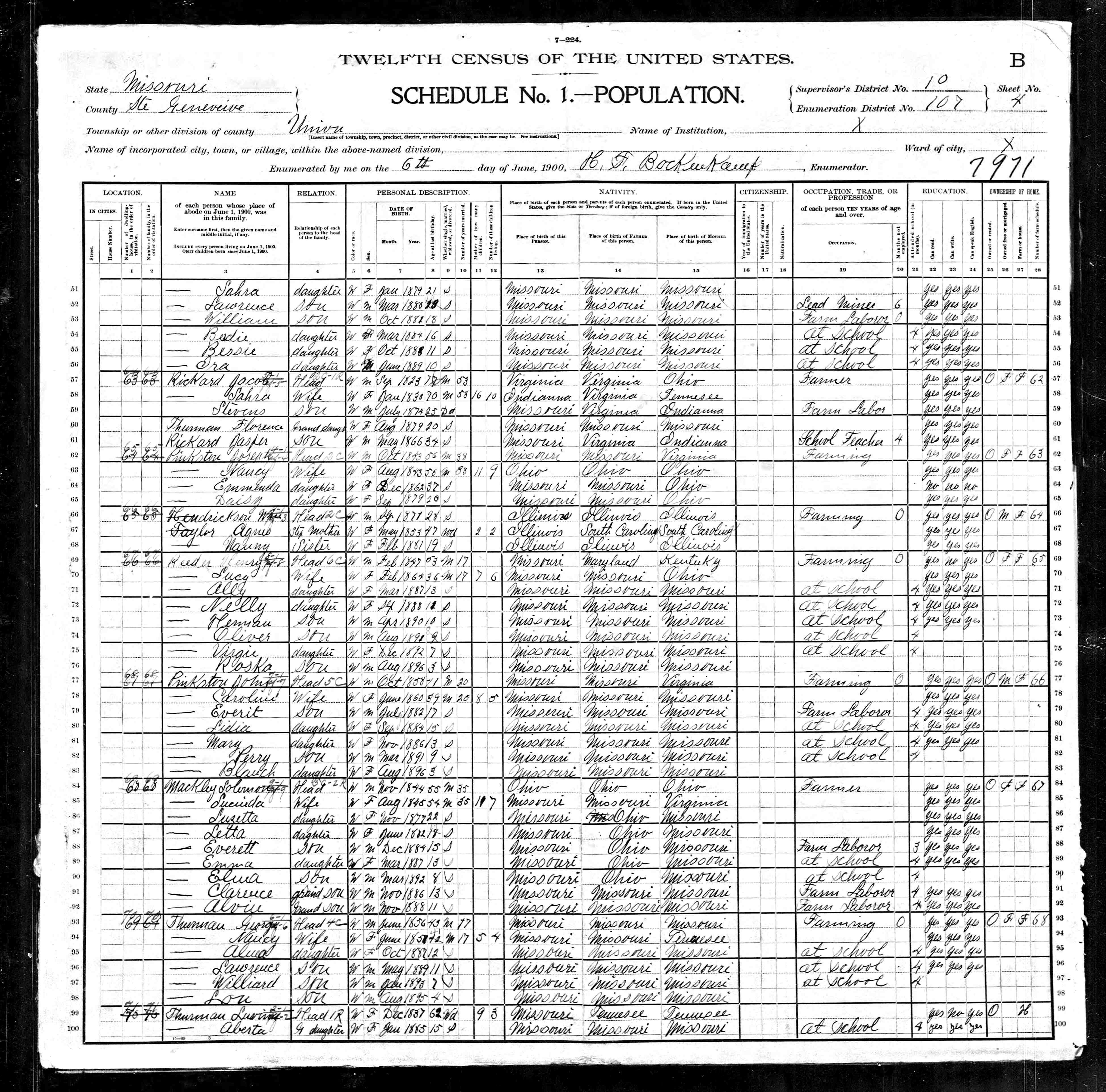 1900 Census, Union township, Ste. Genevieve county, Missouri