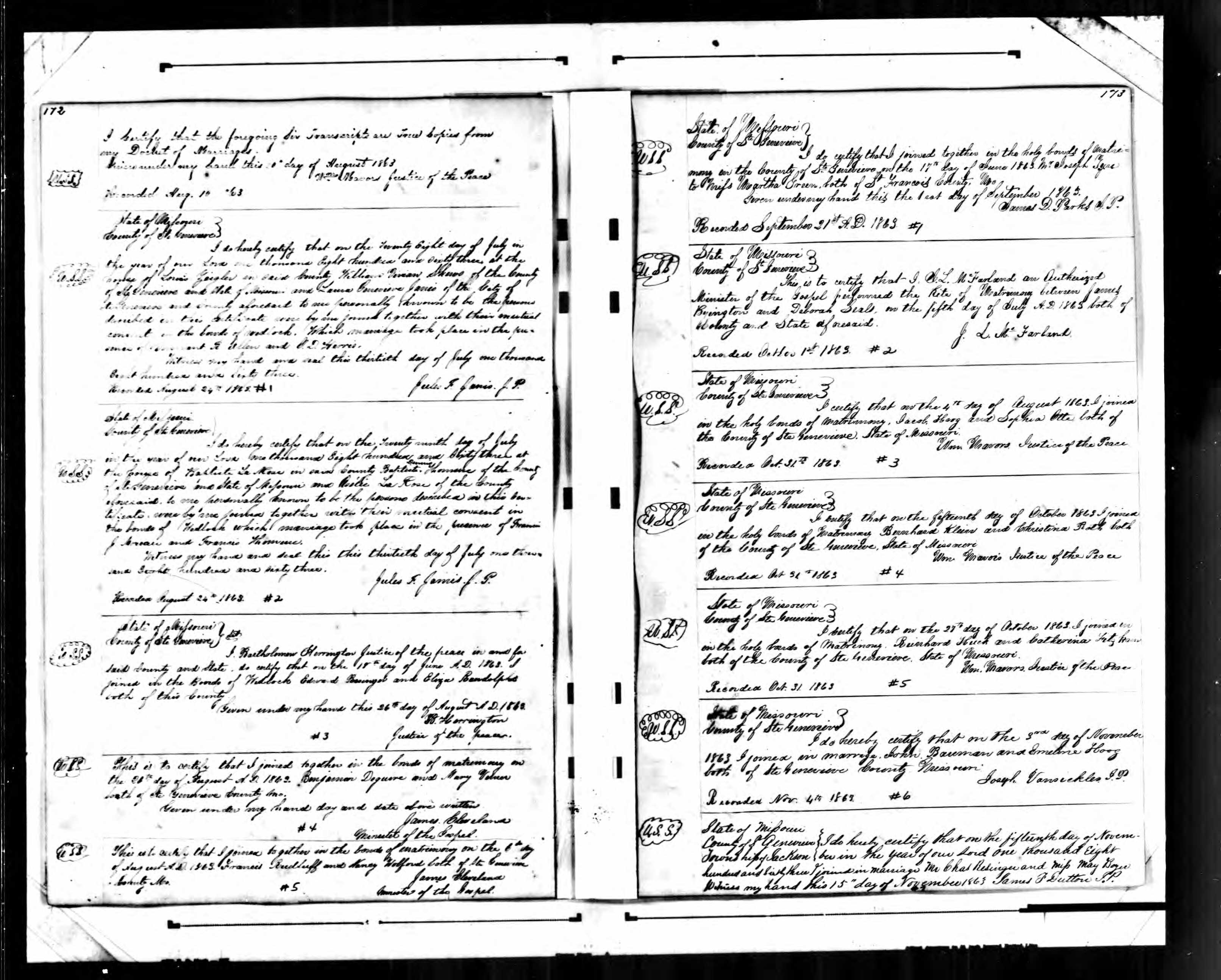 Missouri Marriage Record, Edward Resinger and Eliza Randolph