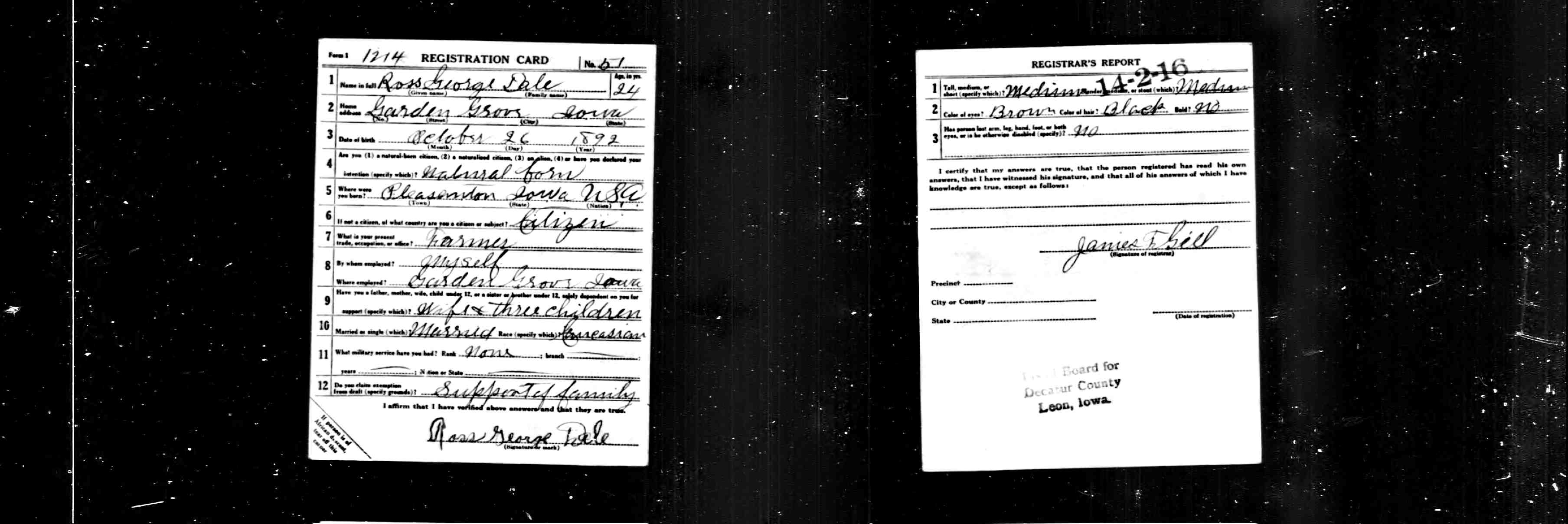 WWI Draft Registration, Ross George Dale