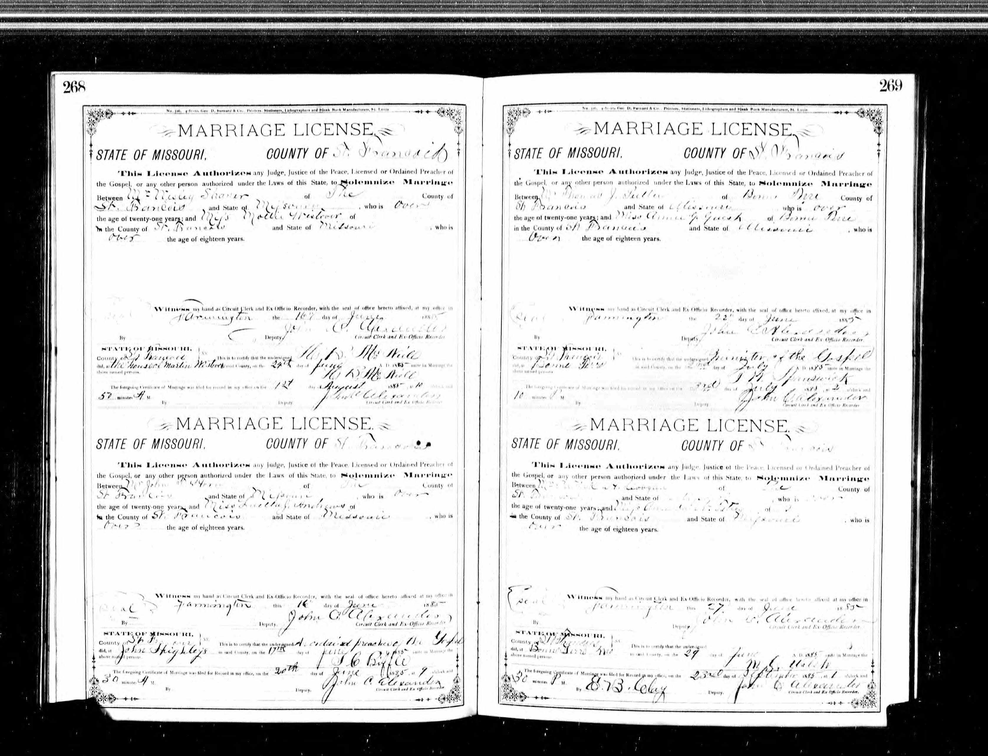 Missouri Marriage Record, John T. Horn and Luella J. Andrews