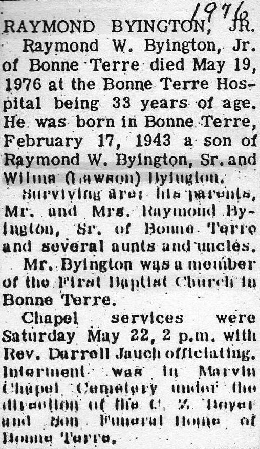 Death, Byington, Raymond Wilford Jr.