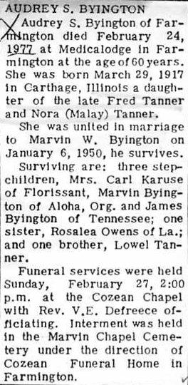 Obituary, Audrey S. Byington