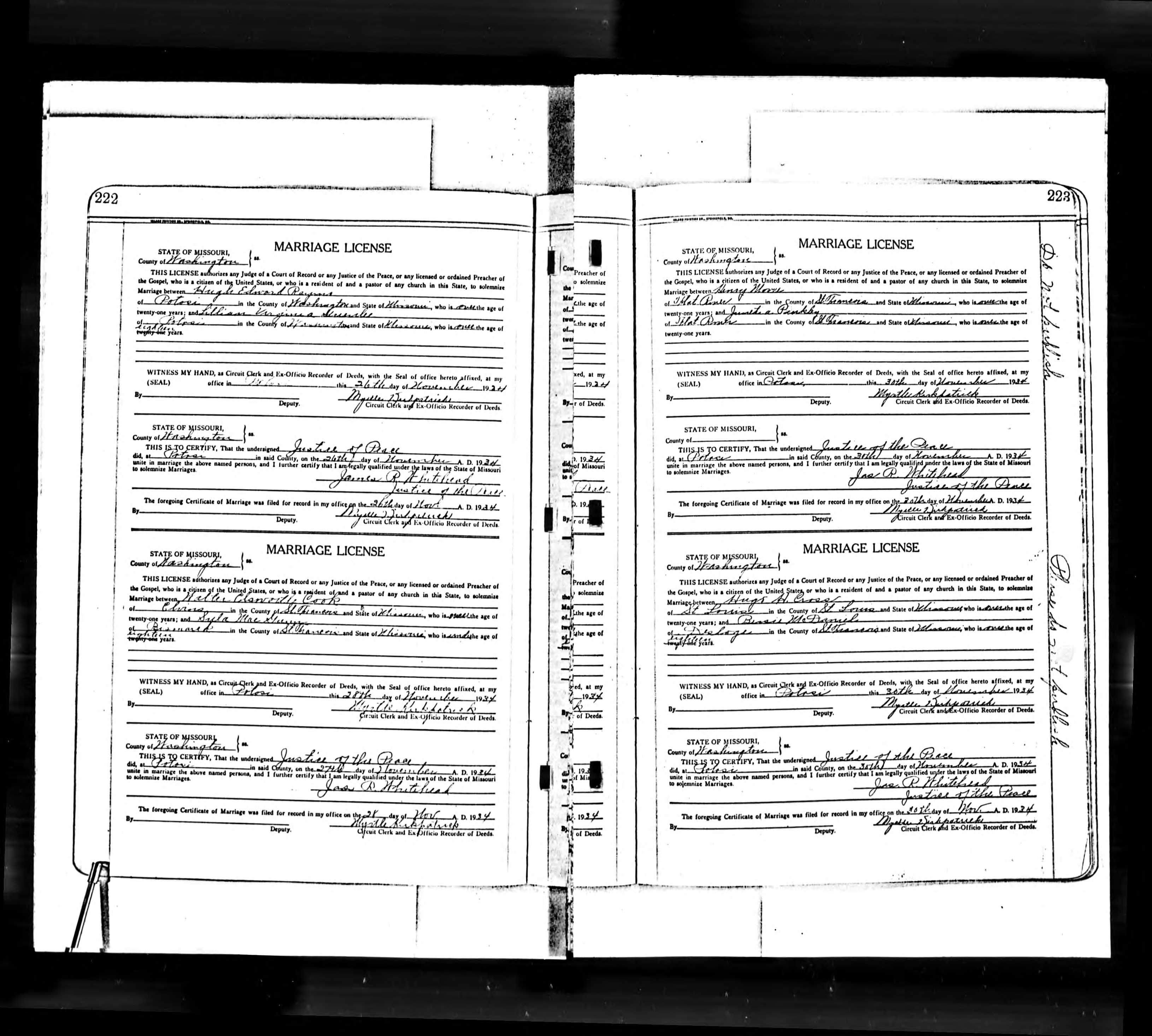 Missouri Marriage Record, Henry Moore and Junetia Pinkley