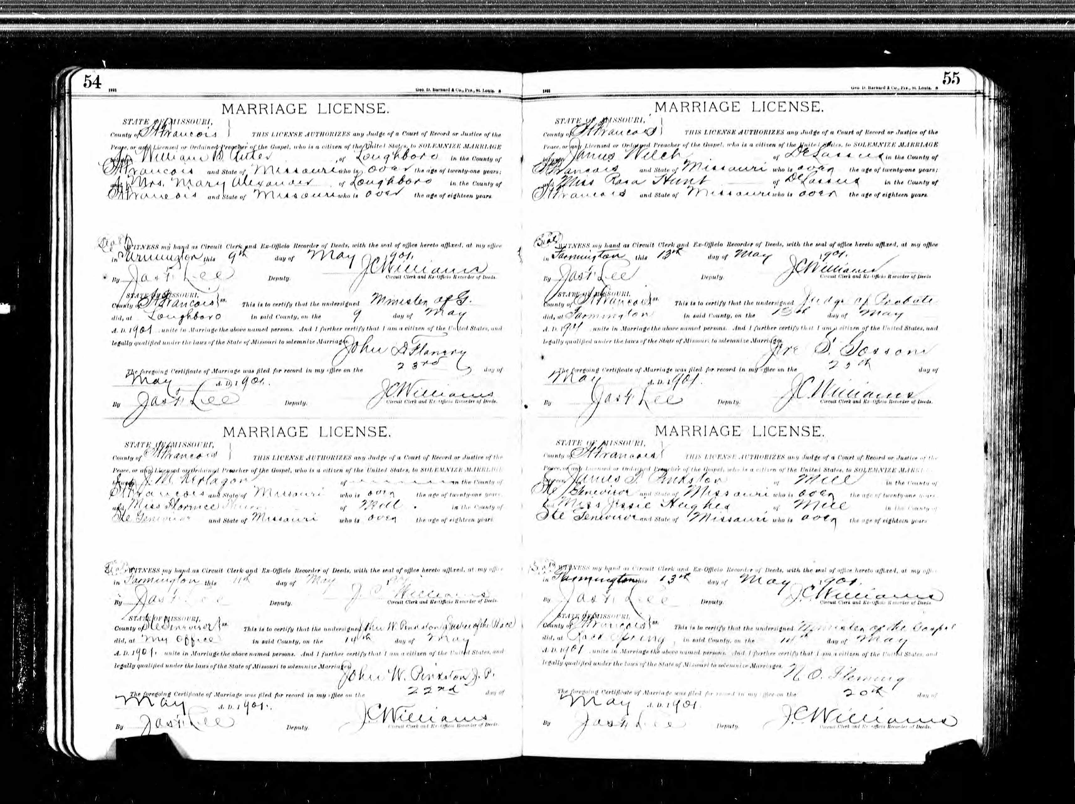 Missouri Marriage Record, James T. Pinkston and Jessie Hughes