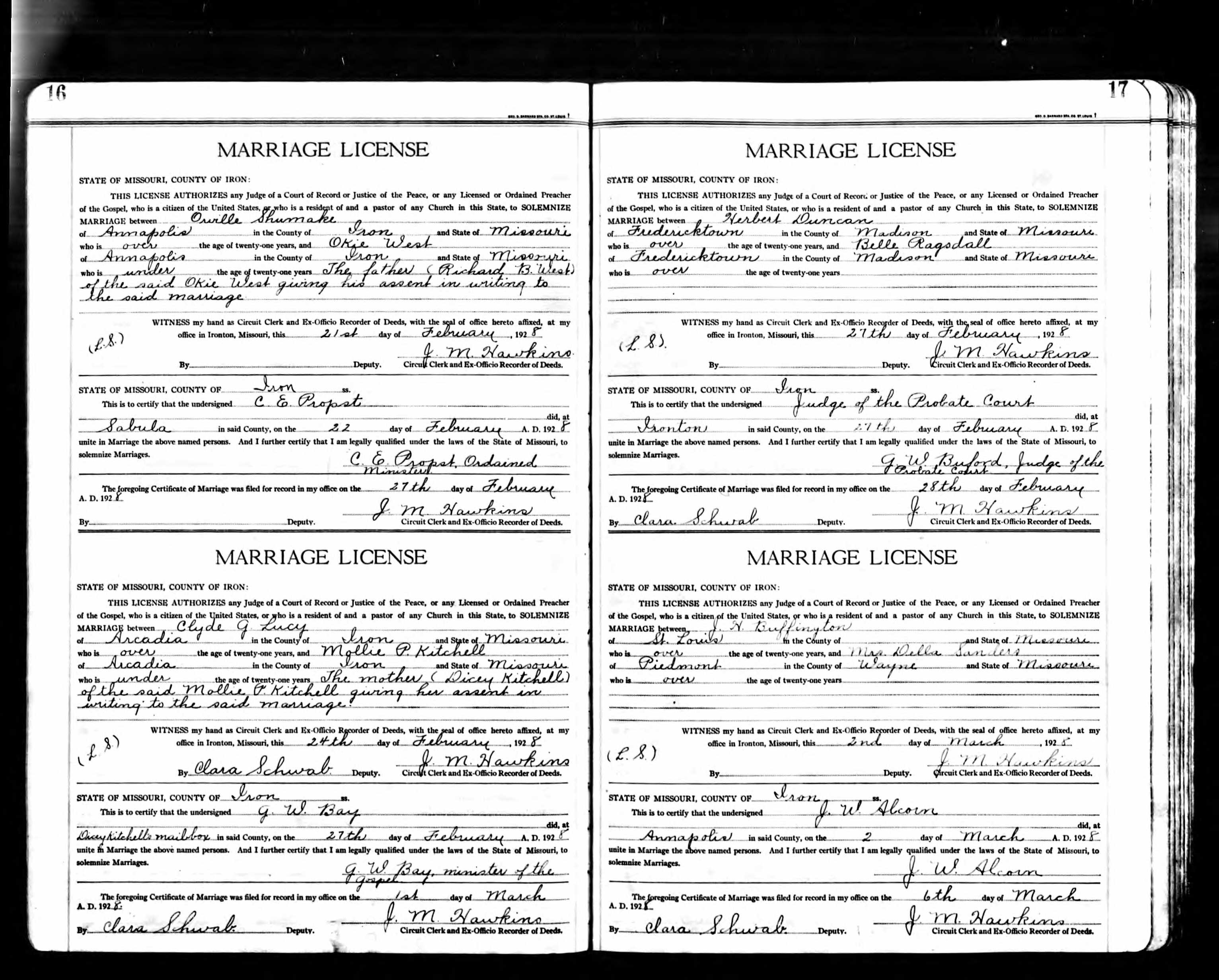 Missouri Marriage Record, J. H. Buffington and Della Sanders