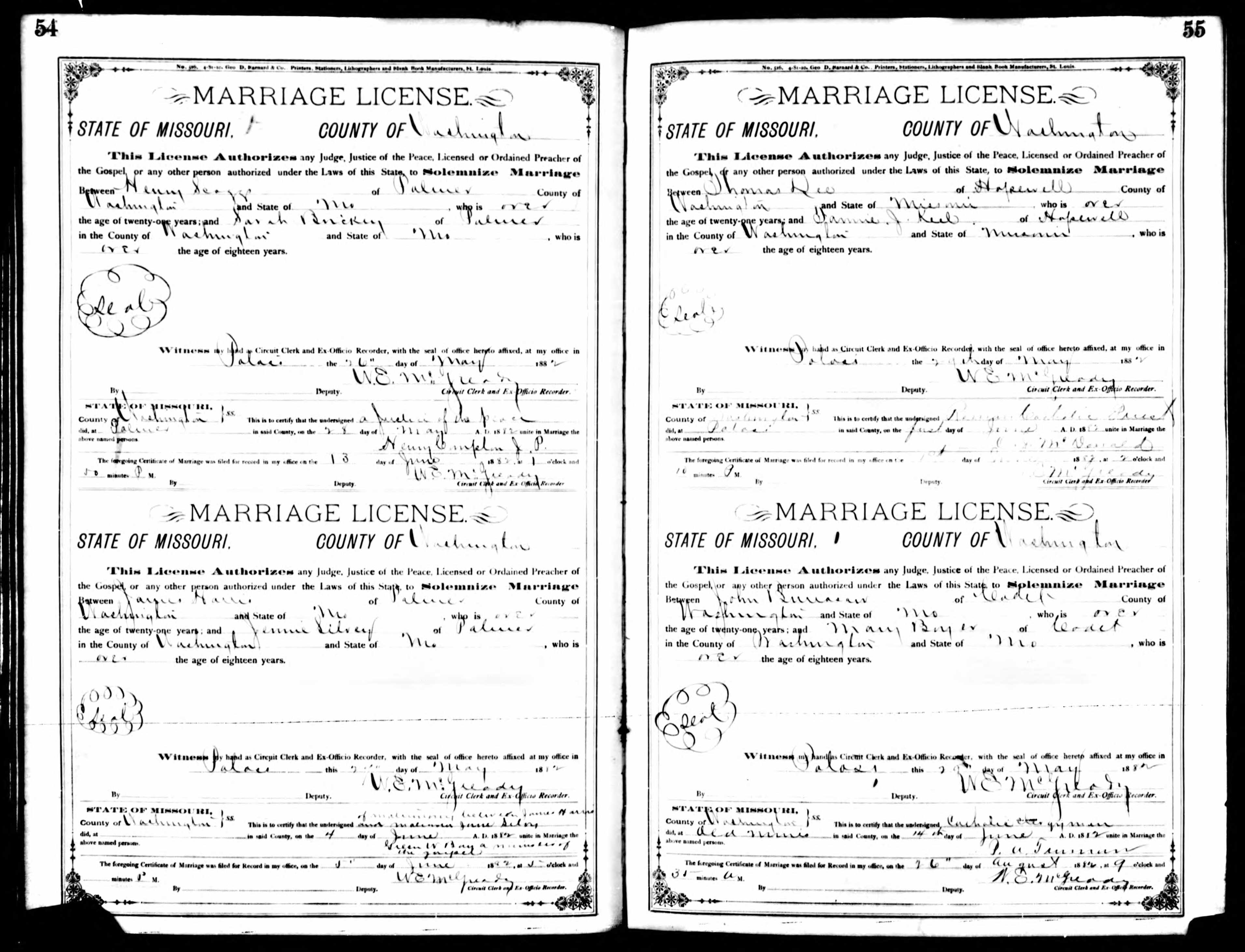 Missouri Marriage Record, Henry Scaggs and Sarah Brickey