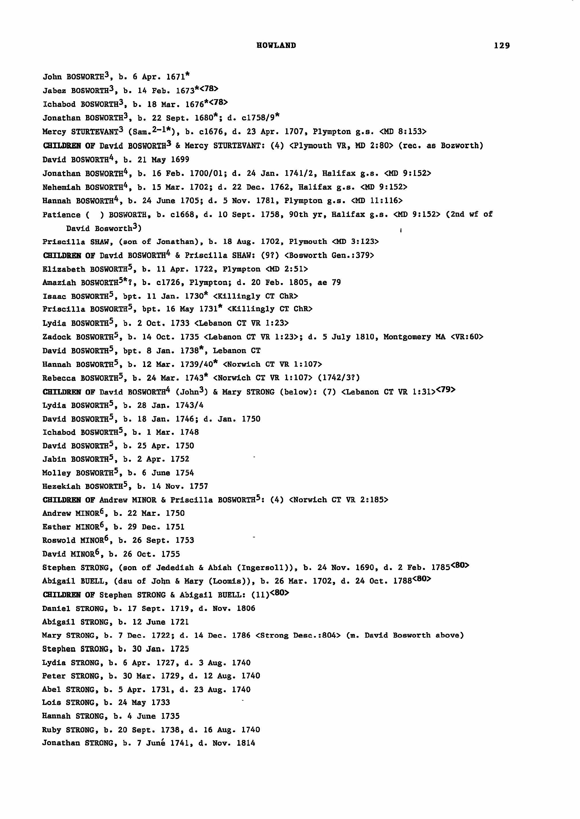 Mayflower Births and Deaths, Bosworth and Strong Families (Vol. 2, page 132)