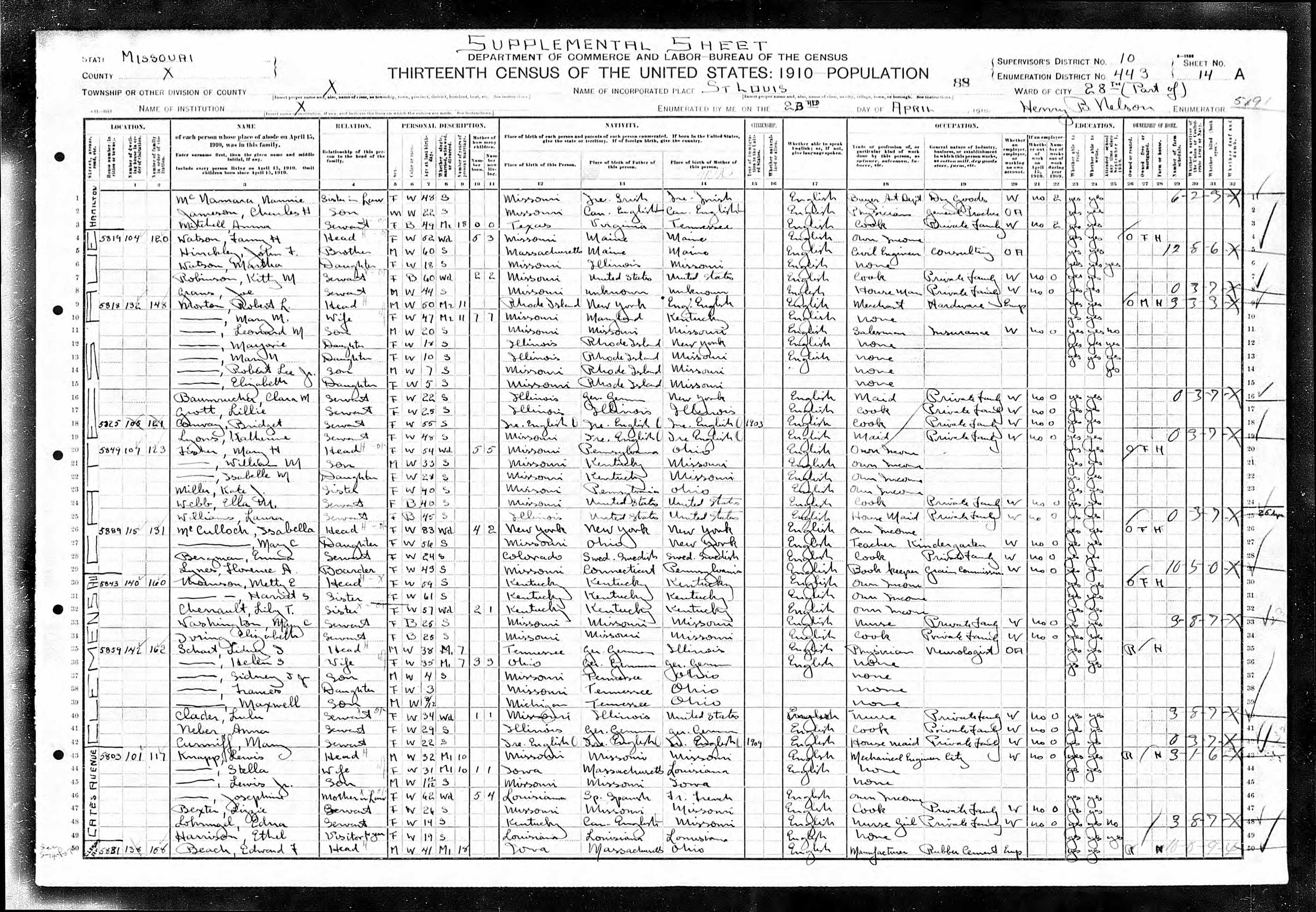 Texas, Supervisor's District 12, Enumeration District 96, Sheet 13B, Lines 51-59