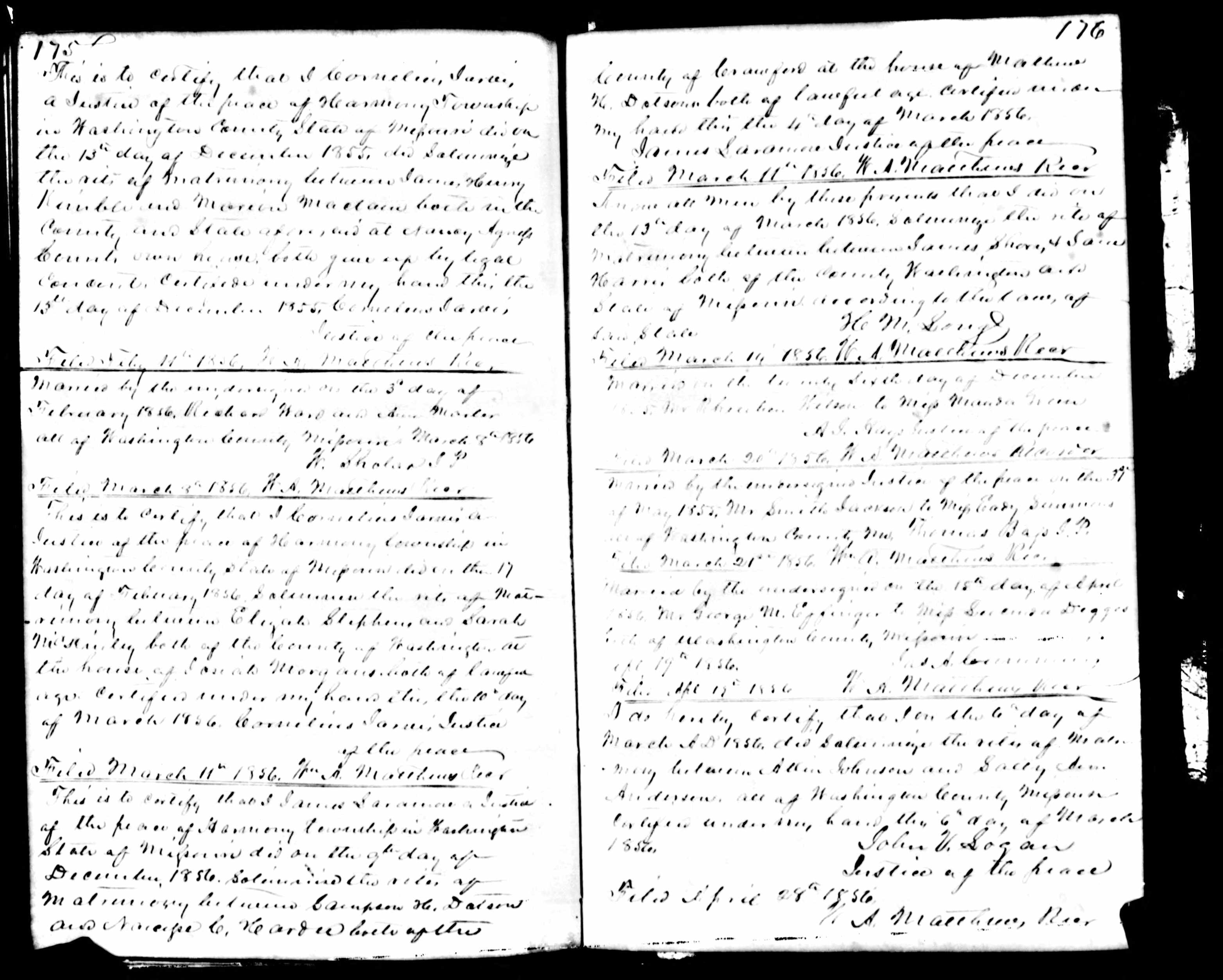 Missouri Marriage Record, Richard Ward and Ann Marler