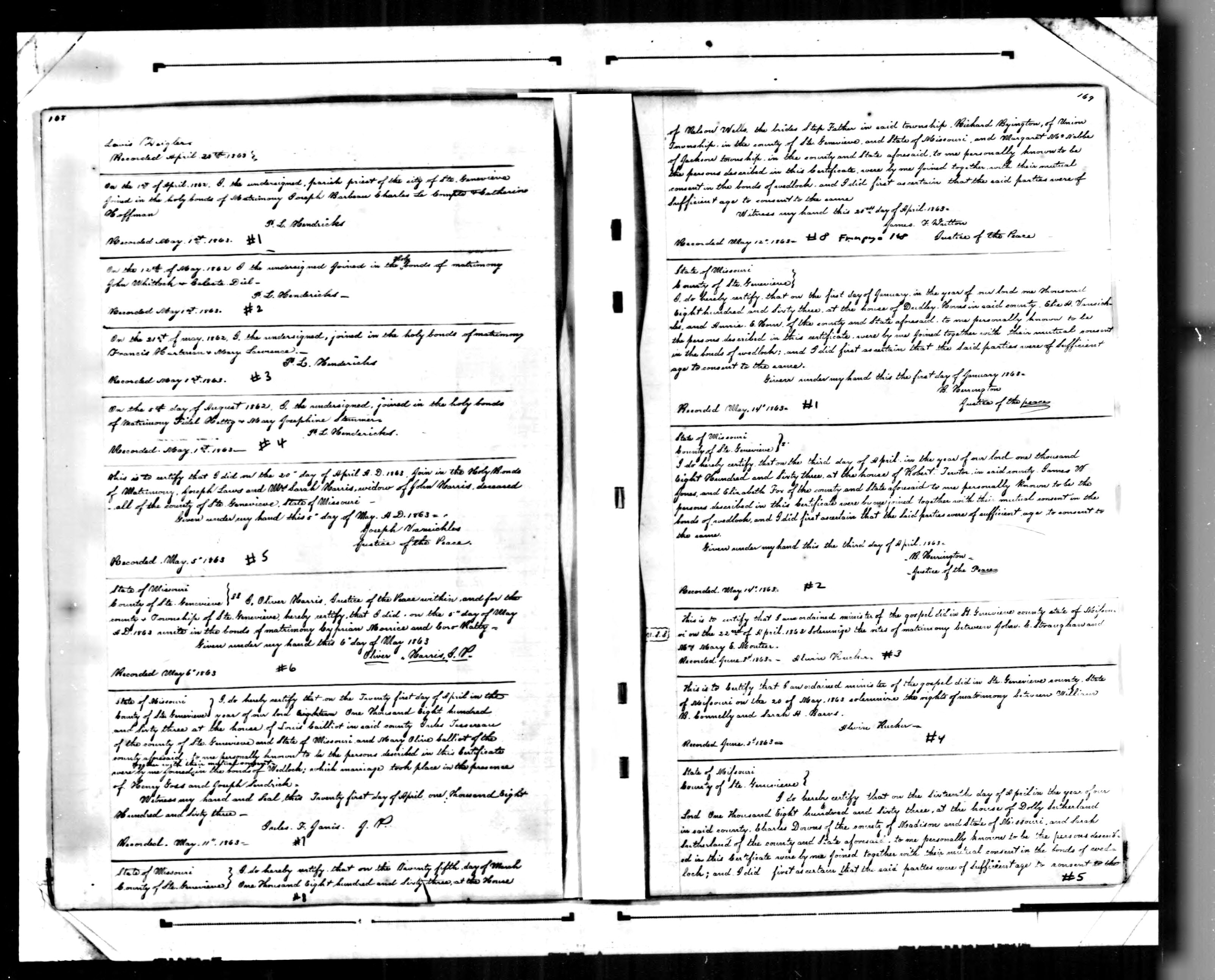Missouri Marriage Record, Richard Byington and Margaret McNabbe, John C. Straughan and Mary E. Monteer