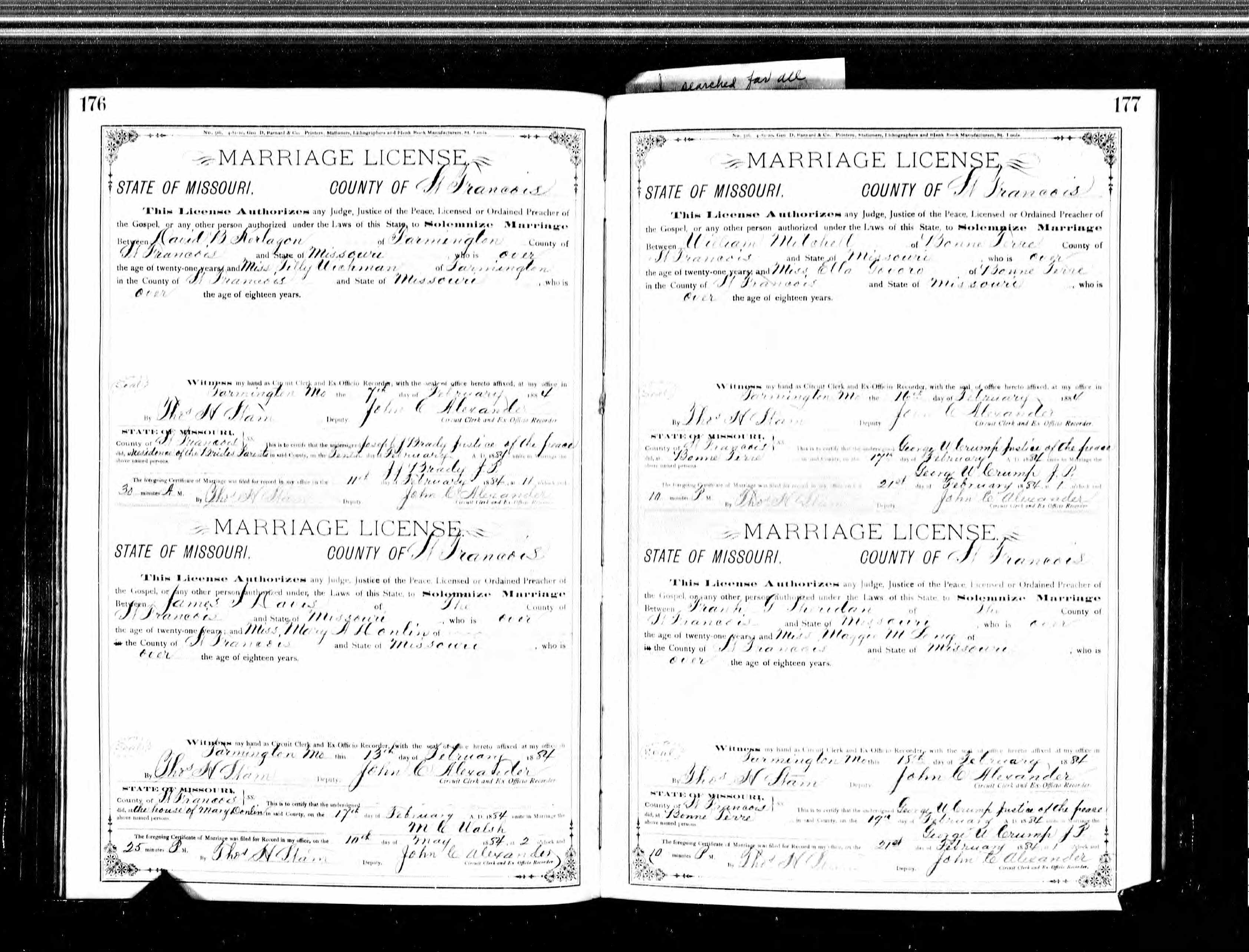 Missouri Marriage Record, David B. Kerlagon and Tilly Wichman