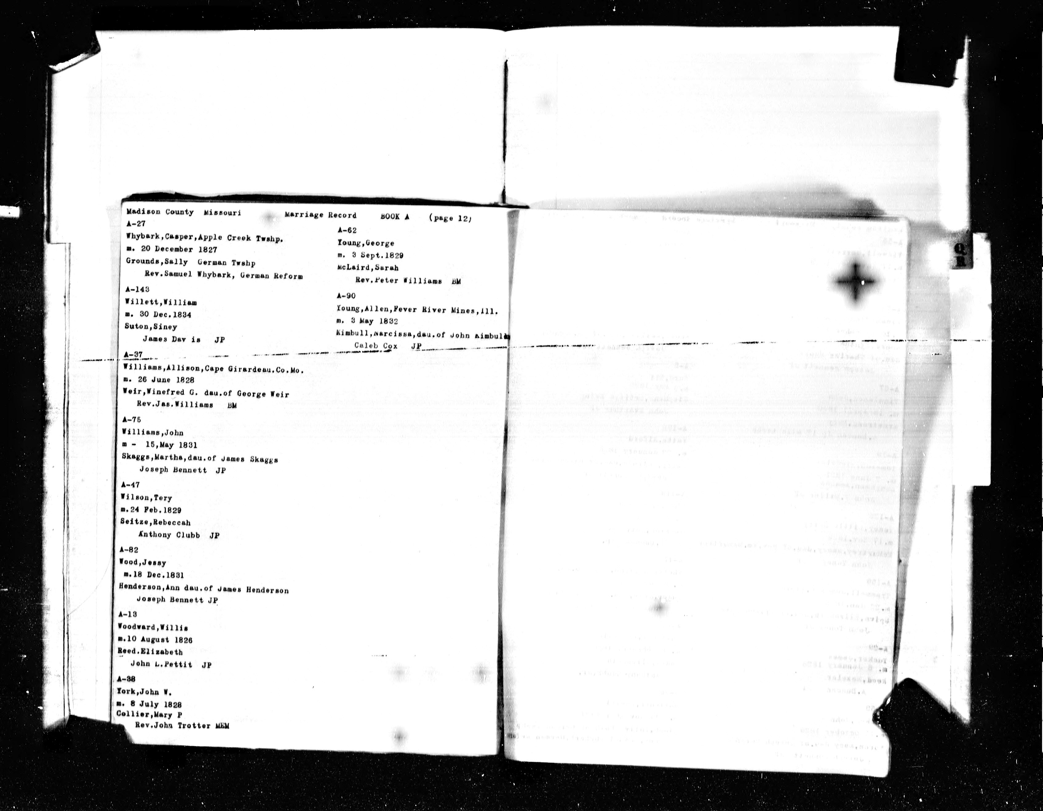 Missouri Marriage Records, John Williams and Martha Skaggs, Jessy Wood and Ann Henderson