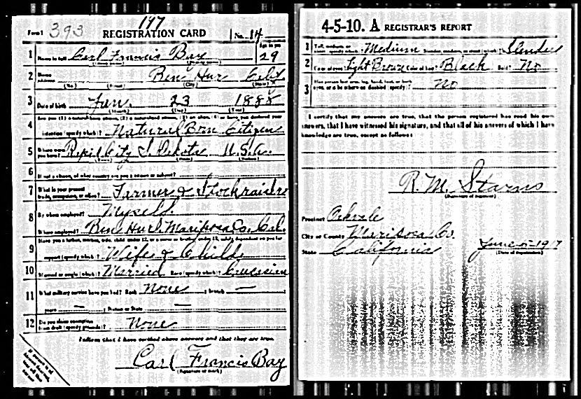 WWI Draft Registration, Carl Francis Bay